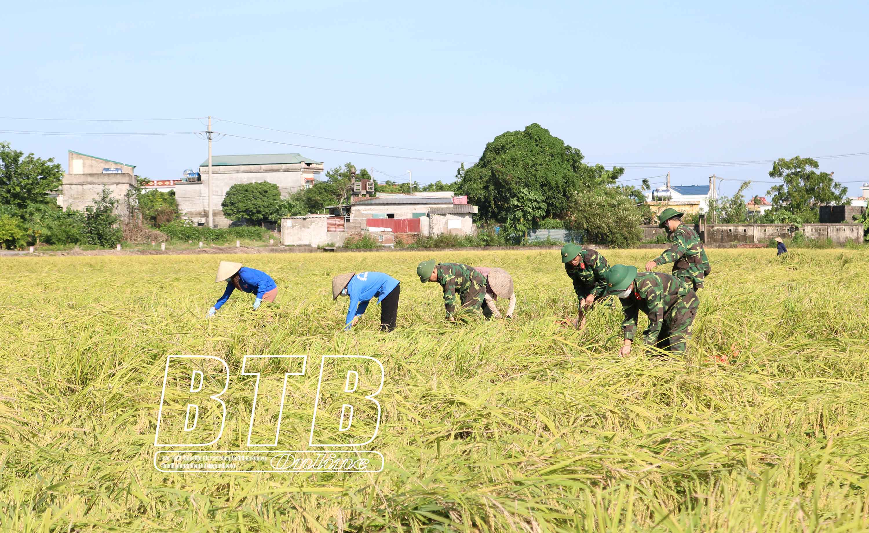 Lực lượng quân đội, thanh niên hỗ trợ dân thu hoạch lúa mùa.