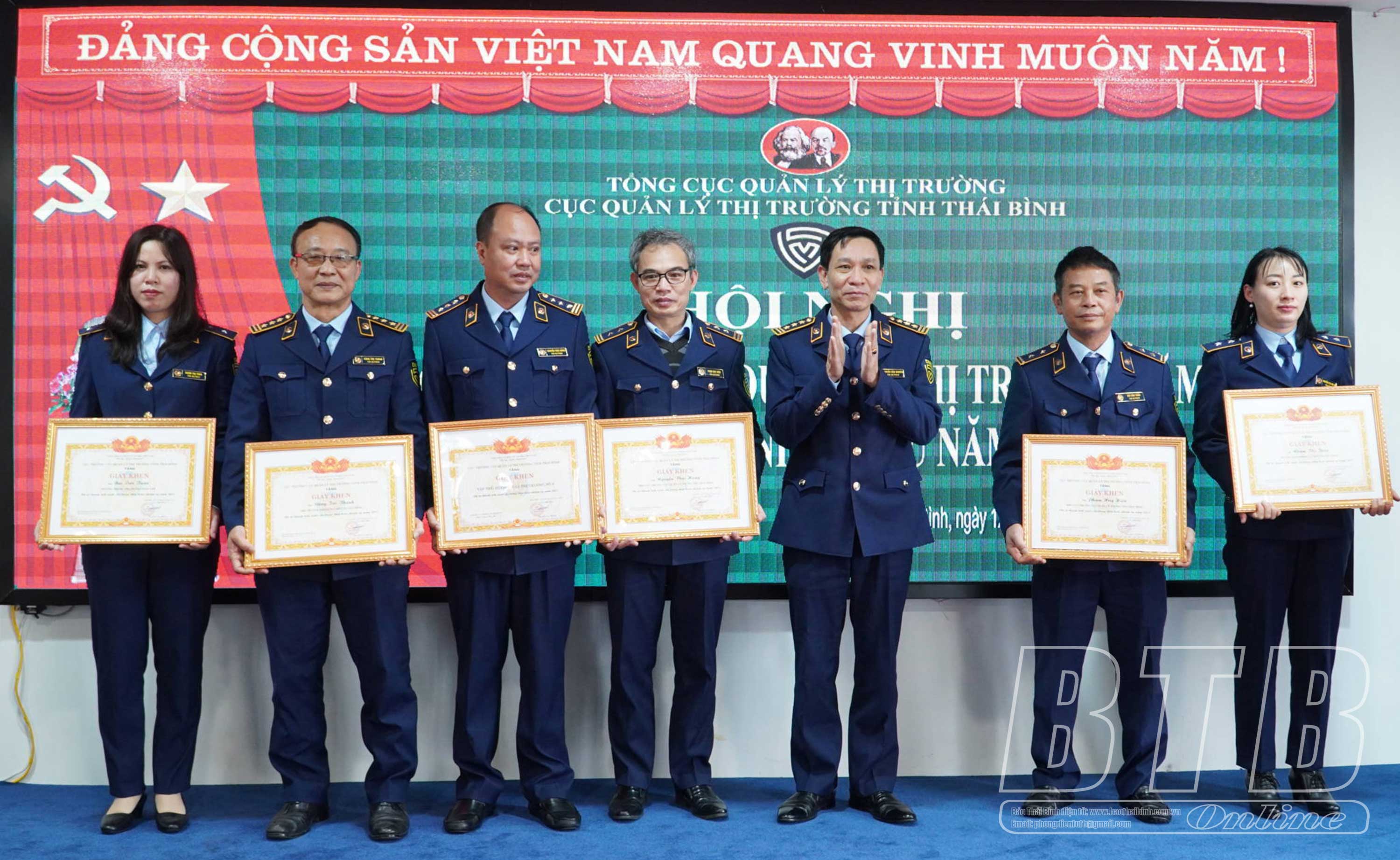 Cục Quản lý thị trường tỉnh khen thưởng cho các tập thể, cá nhân có thành tích xuất sắc trong năm 2021.
