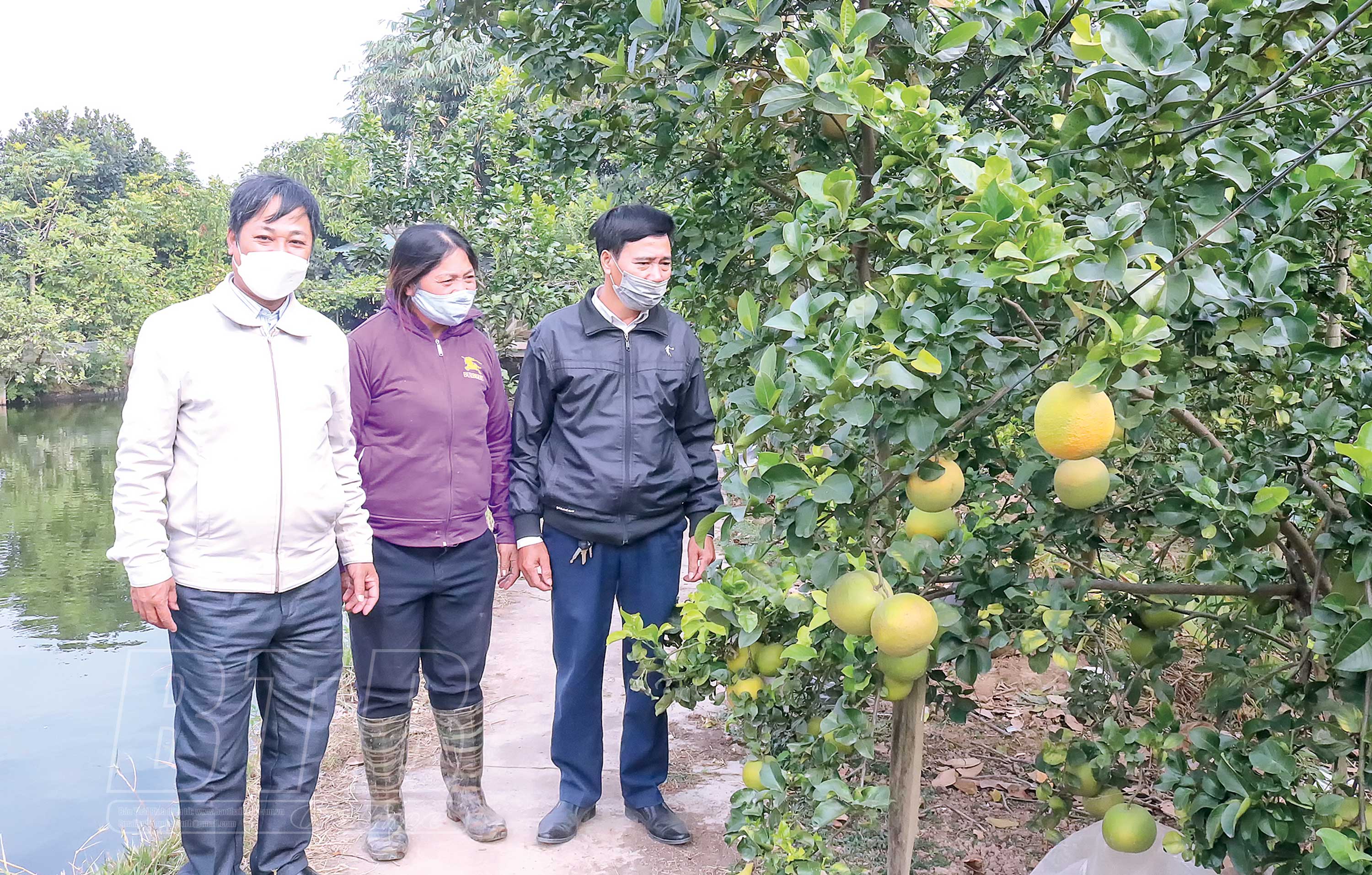 Mô hình trồng cam Bố Hạ, táo, đào ao thả cá của gia đình chị Vũ Thị Hoa, thôn Trần Phú, xã Tây Đô (Hưng Hà) cho thu nhập hơn 600 triệu đồng/năm.