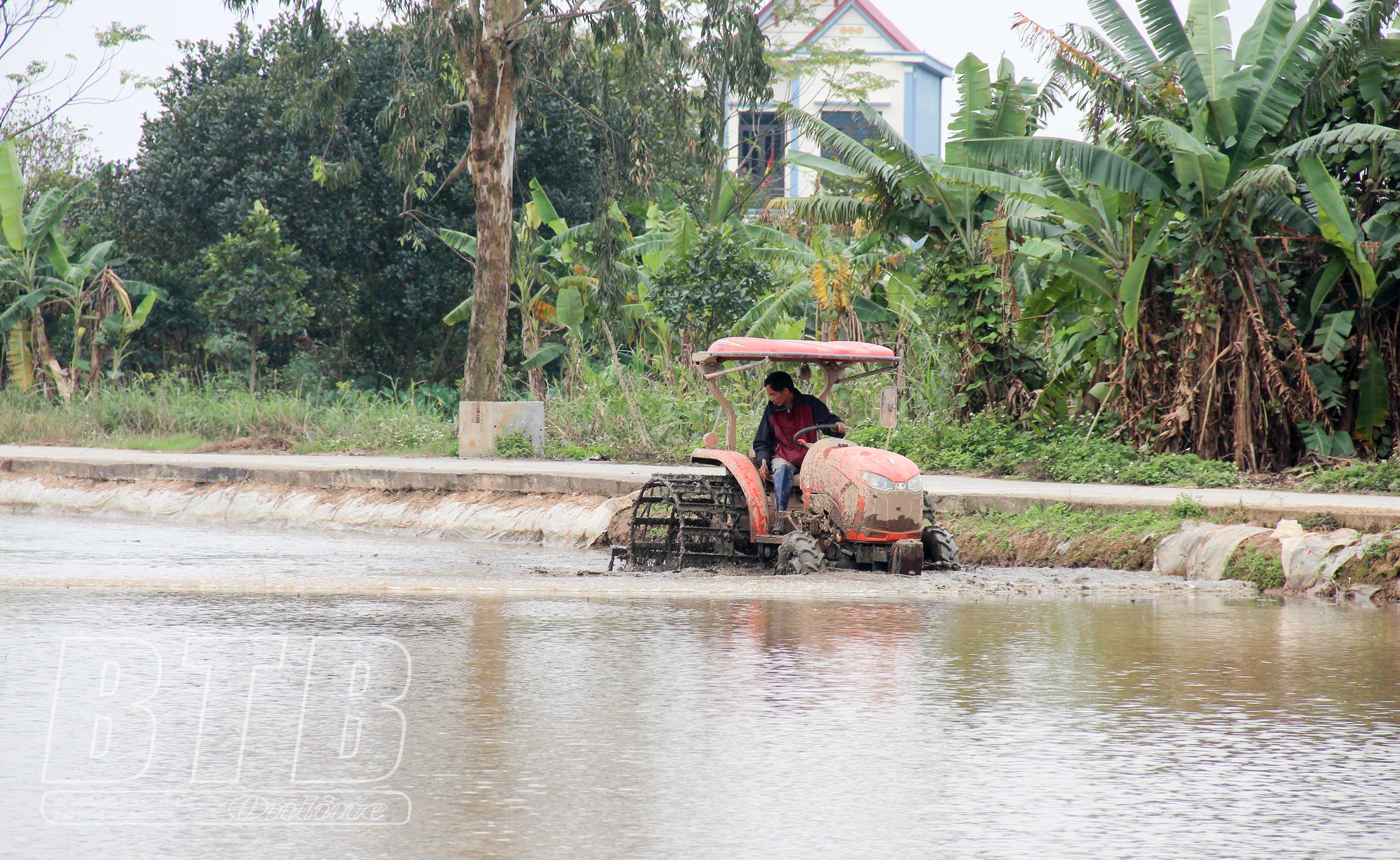 Trong ảnh: Nông dân xã Thụy Thanh (Thái Thụy) làm đất gieo cấy lúa xuân.