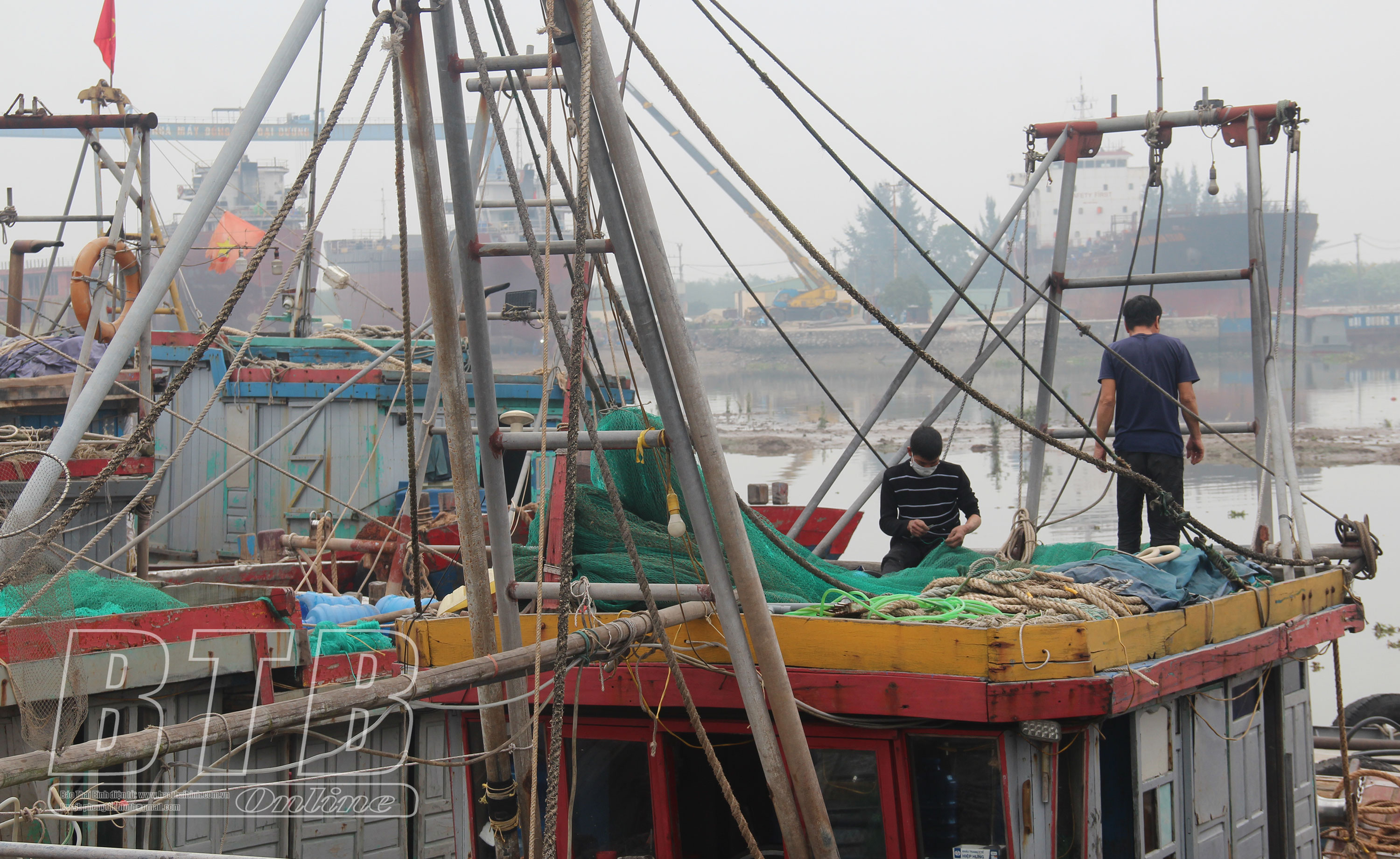 Ngư dân xã Nam Thịnh sửa soạn lại ngư cụ chuẩn bị ra khơi.