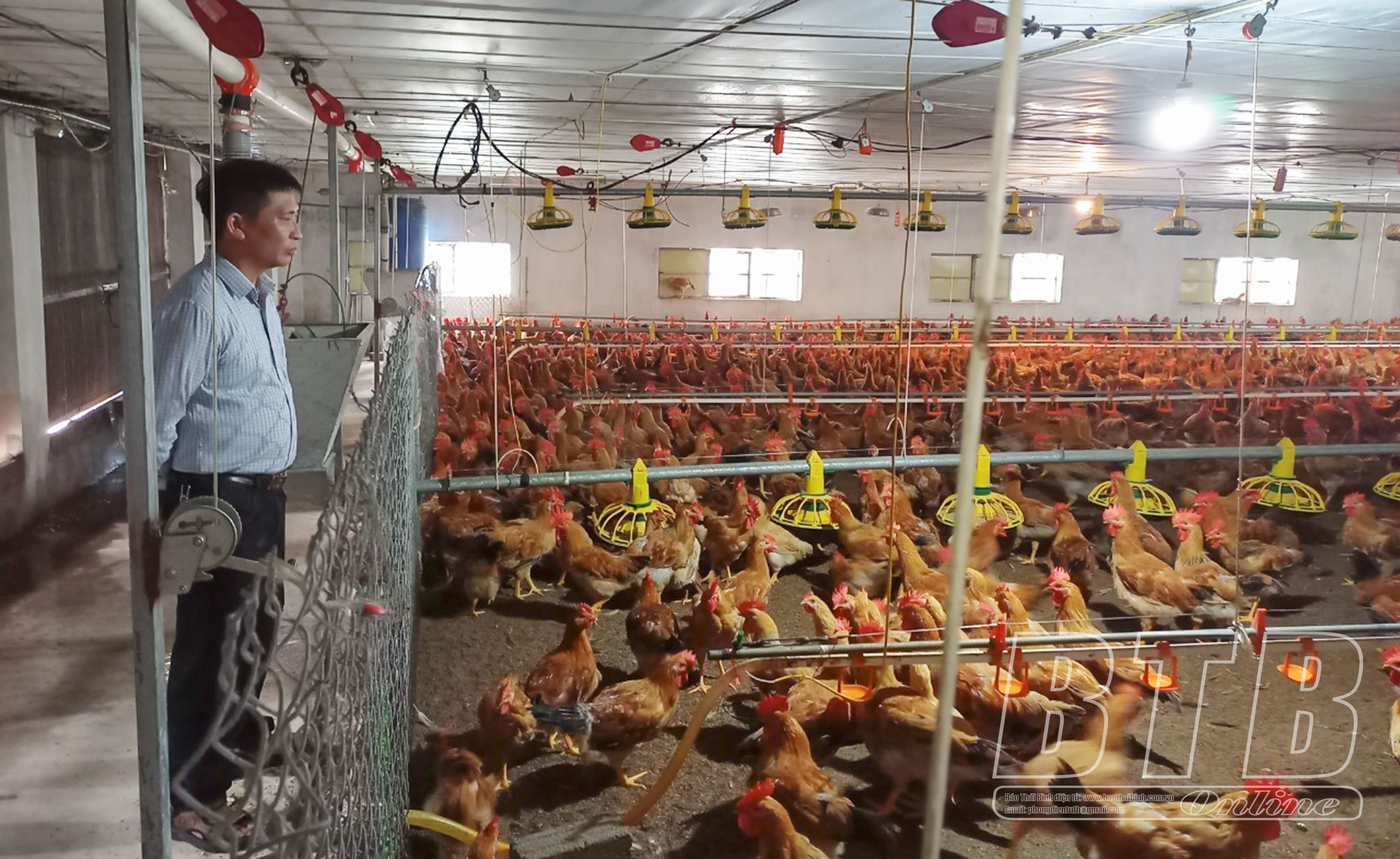 Dẫn chúng tôi thăm trang trại chăn nuôi rộng 7ha trên con đường bê tông rộng rãi, thẳng tắp, anh Thủy chia sẻ: Khu chăn nuôi của tôi trước đây là cánh đồng trũng, ngập úng quanh năm. Sau khi cây đay hết thời, người dân chuyển sang trồng cam nhưng cũng không phù hợp nên nơi này gần như bỏ hoang cỏ mọc quá đầu người. Năm 2012, khi xã có chủ trương chuyển đổi vùng cấy lúa kém hiệu quả sang chăn nuôi, được sự tạo điều kiện của chính quyền các cấp, tôi mạnh dạn tích tụ 1ha đầu tư xây dựng trang trại nuôi gà thương phẩm. Thời điểm đó, tôi đang kinh doanh thức ăn chăn nuôi, thấy người chăn nuôi trống chuồng, bỏ chuồng nhiều do chăn nuôi không hiệu quả, tôi đánh liều bỏ vốn liếng đầu tư gom đất xây dựng chuồng trại.