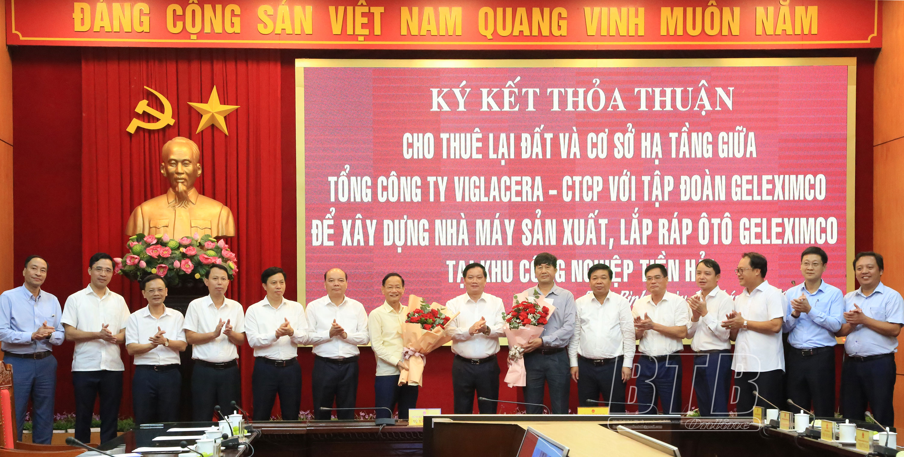 Các đồng chí lãnh đạo tỉnh tặng hoa chúc mừng Tổng công ty Viglacera và Tập đoàn Geleximco.