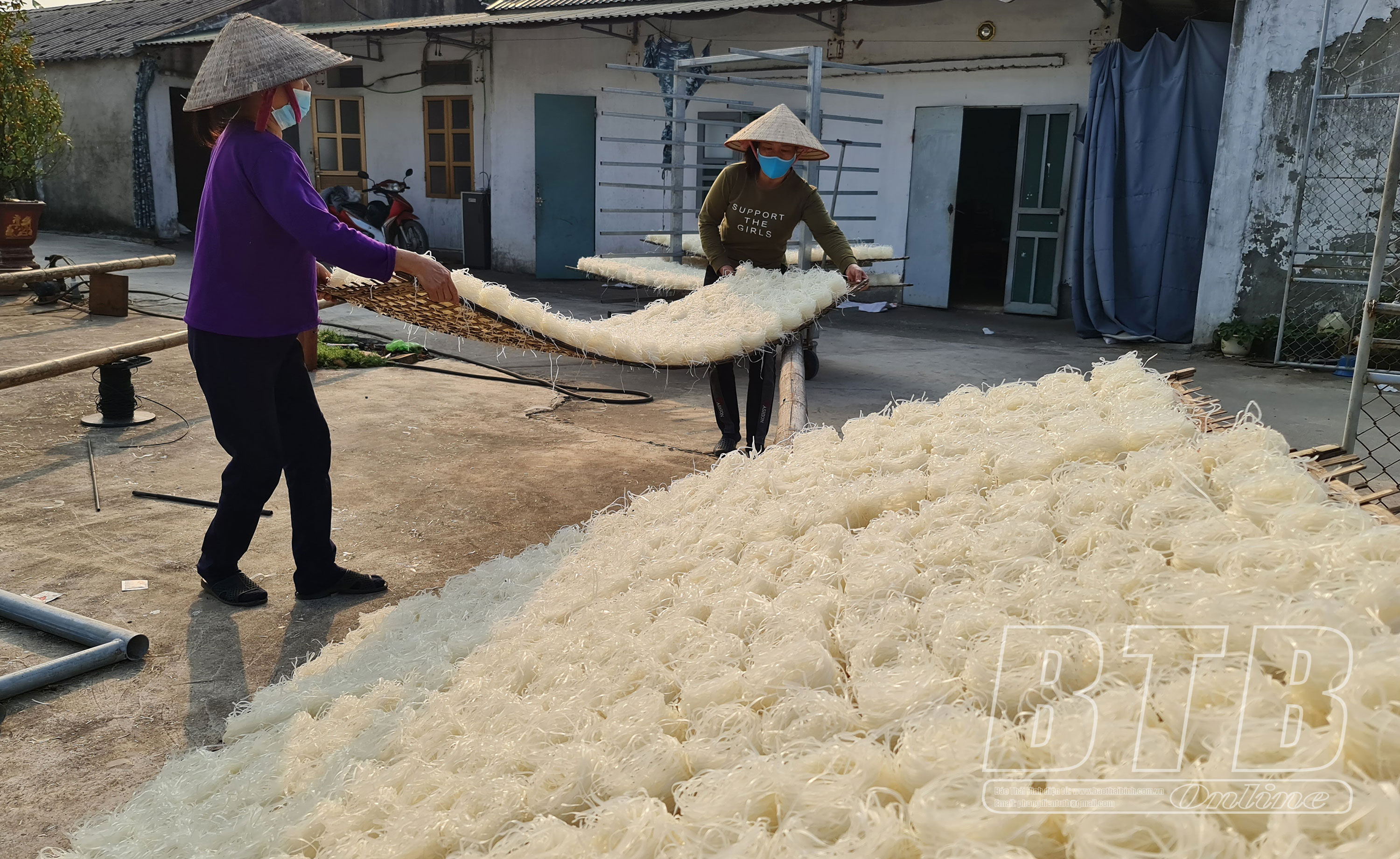 Sản xuất phở ăn liền tại Công ty TNHH Liên Hạnh (cụm công nghiệp thị trấn Vũ Thư, huyện Vũ Thư).