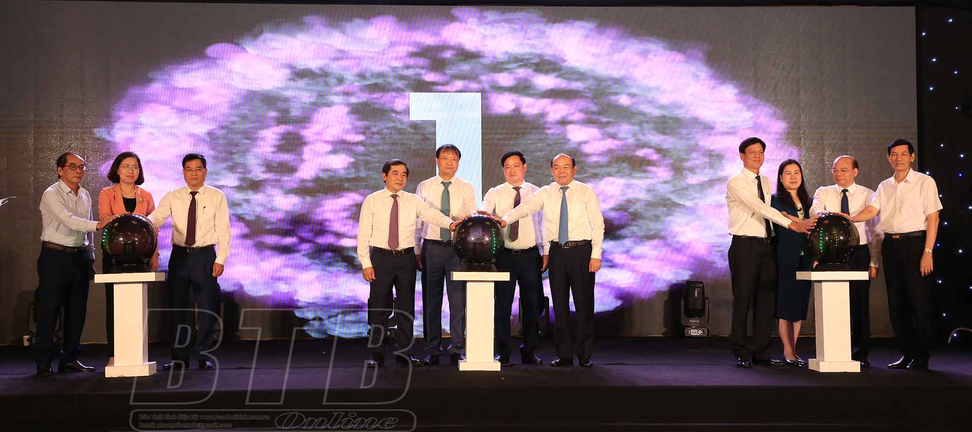 Các đại biểu khởi động chương trình đưa hàng nông nghiệp, công nghiệp tiêu biểu của Thái Bình vào hệ thống phân phối.