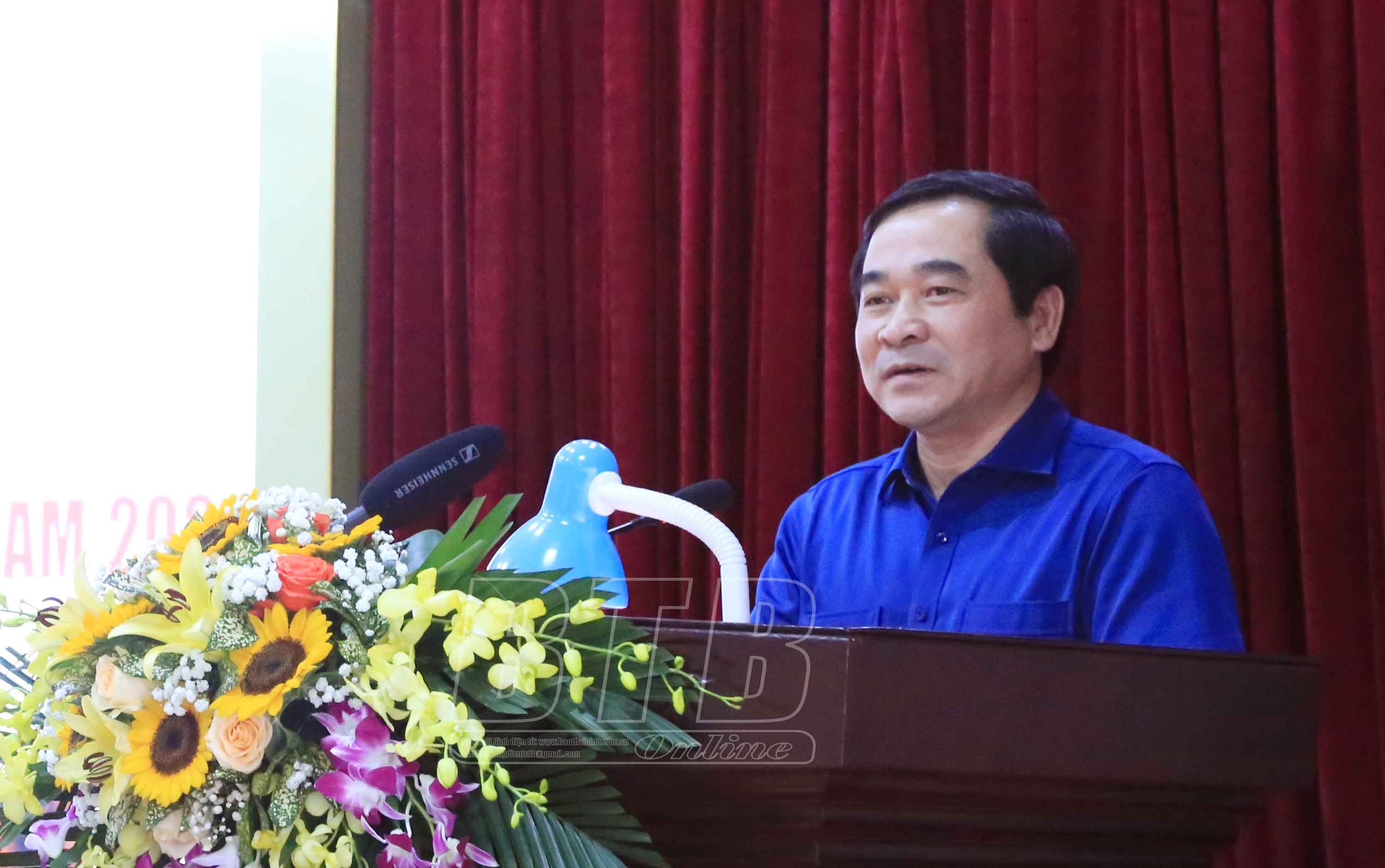 Đồng chí Nguyễn Tiến Thành, Phó Bí thư thường trực Tỉnh ủy, Chủ tịch HĐND tỉnh phát biểu tại hội nghị.
