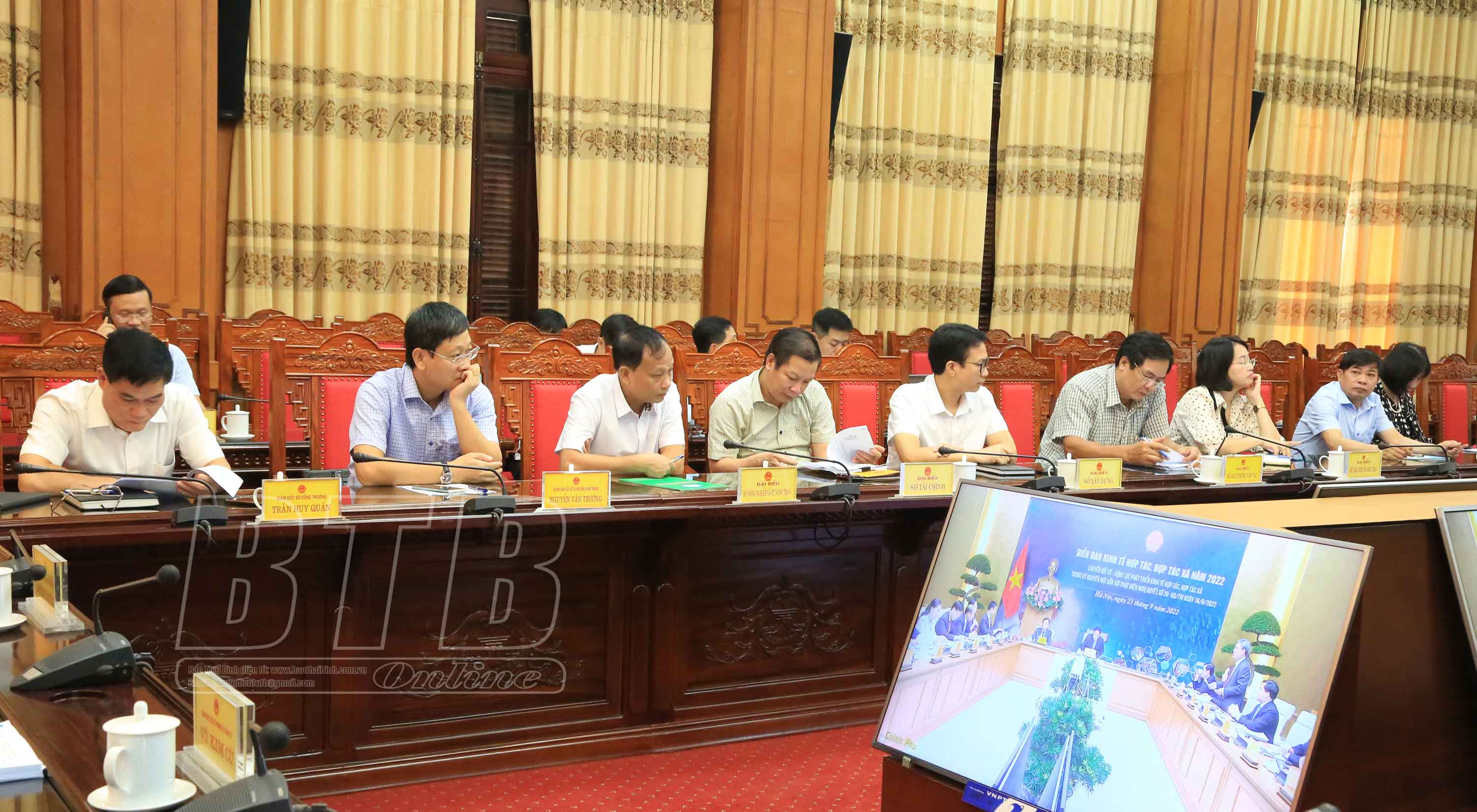 Tại điểm cầu Thái Bình, các đồng chí: Nguyễn Khắc Thận, Phó Bí thư Tỉnh ủy, Chủ tịch UBND tỉnh; Vũ Kim Cứ, Ủy viên Ban Thường vụ Tỉnh ủy, Giám đốc Sở Kế hoạch và Đầu tư dự diễn đàn.