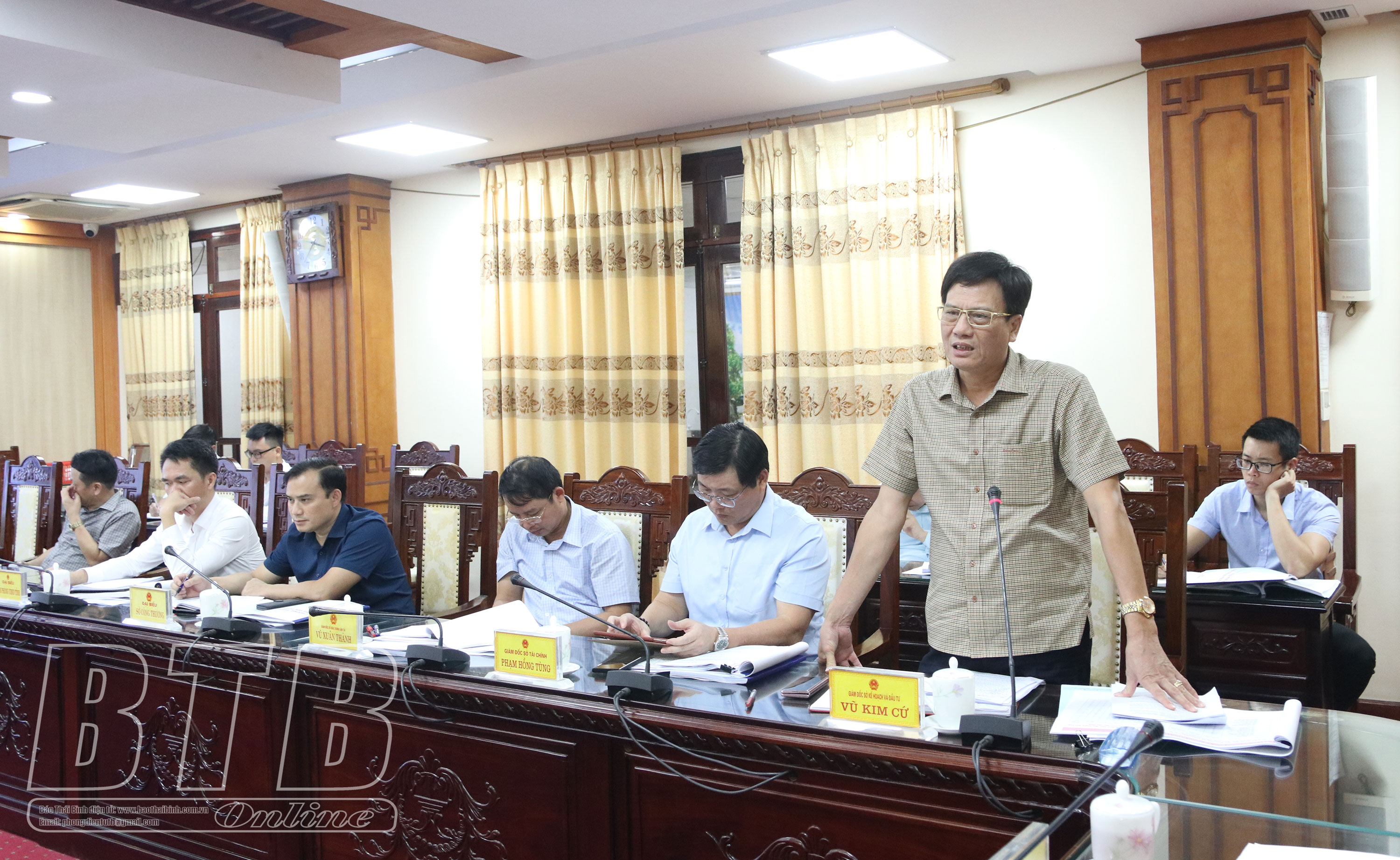 Đồng chí Vũ Kim Cứ, Ủy viên Ban Thường vụ Tỉnh ủy, Giám đốc Sở Kế hoạch và Đầu tư phát biểu tại cuộc họp.