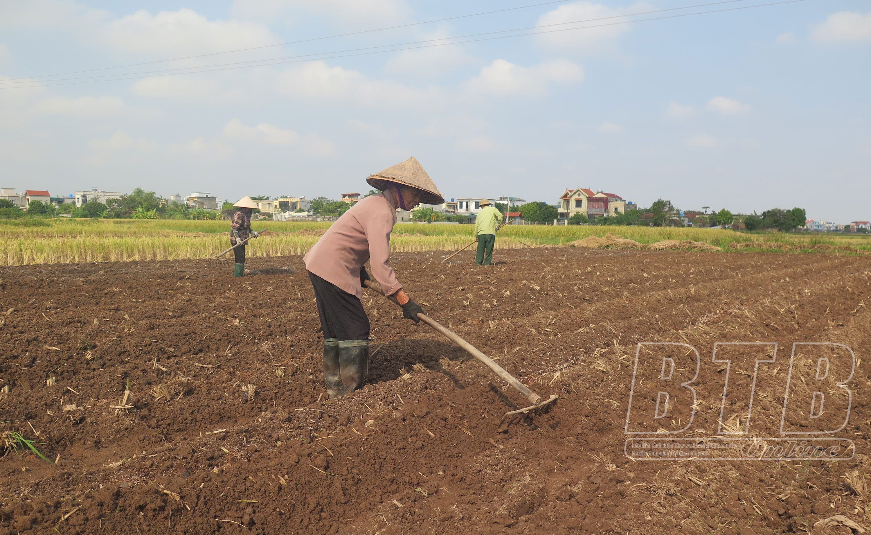 Người dân thôn Phụng Thượng, xã Vũ An trồng khoai tây.