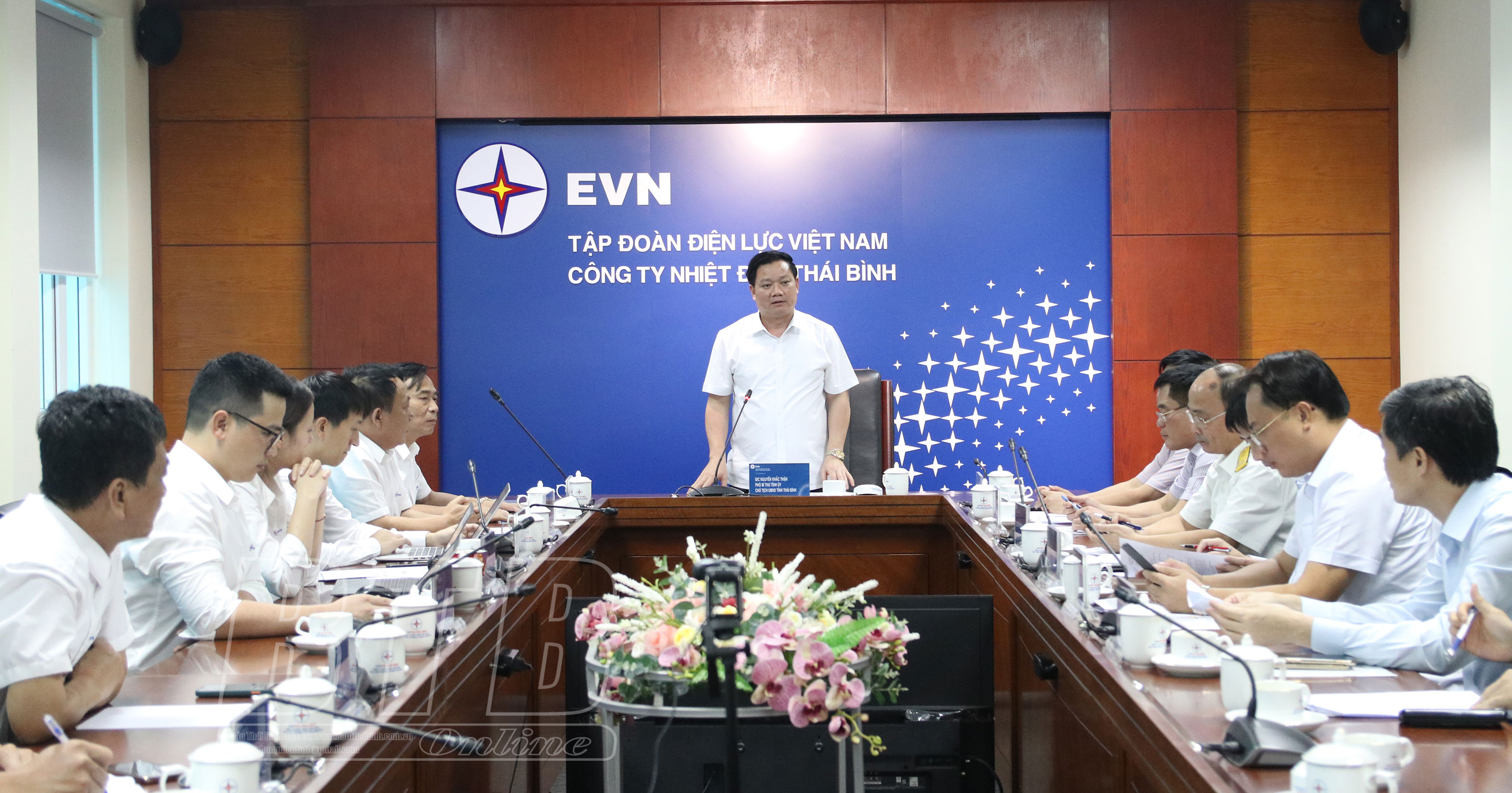 Lãnh đạo Công ty Nhiệt điện Thái Bình báo cáo tình hình SXKD của doanh nghiệp.