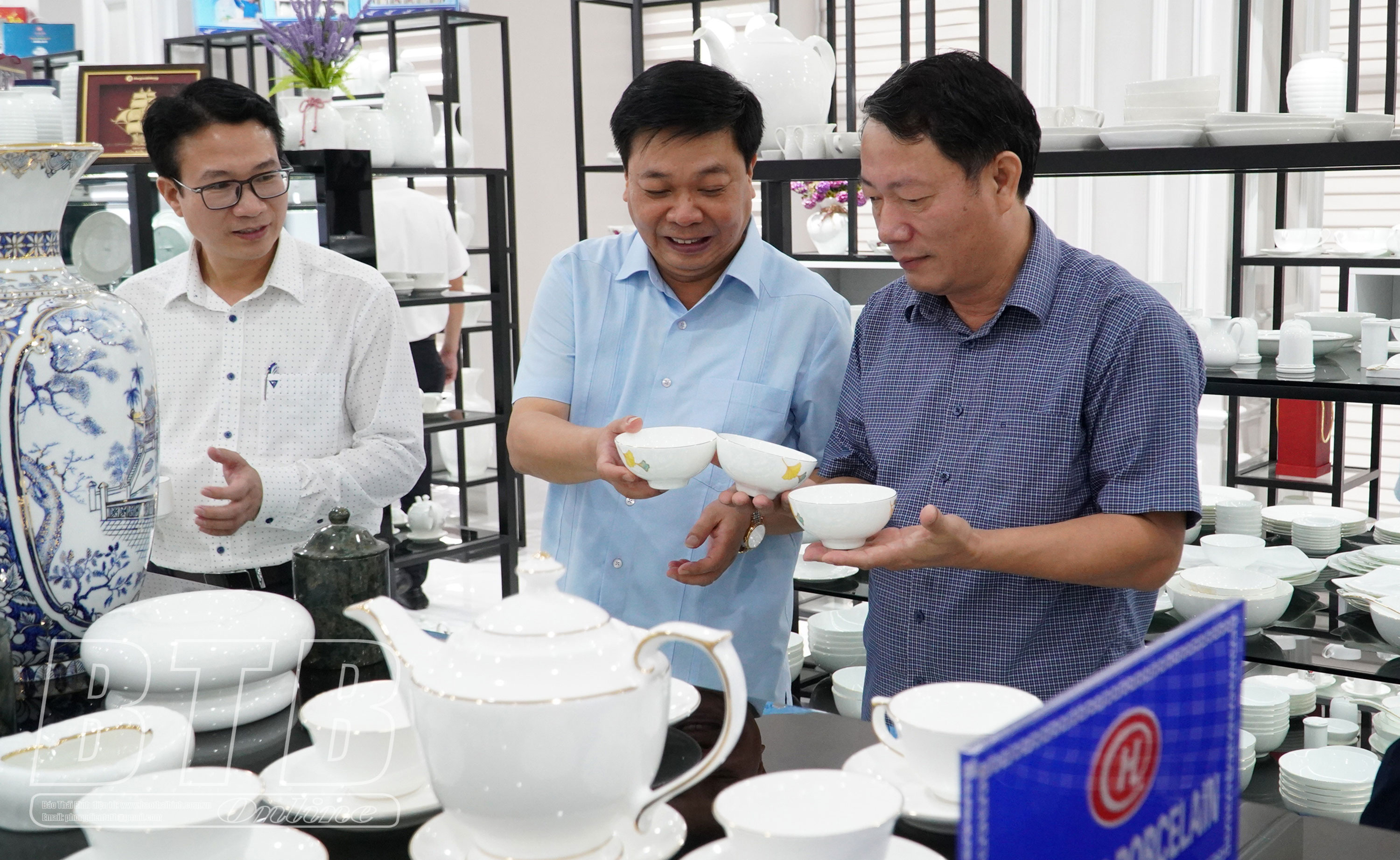 Đồng chí Nguyễn Quang Hưng, Ủy viên Ban Thường vụ Tỉnh ủy, Phó Chủ tịch thường trực UBND tỉnh đánh giá cao Công ty TNHH Sản xuất kinh doanh sứ Hảo Cảnh trong việc đổi mới công nghệ, máy móc sản xuất.