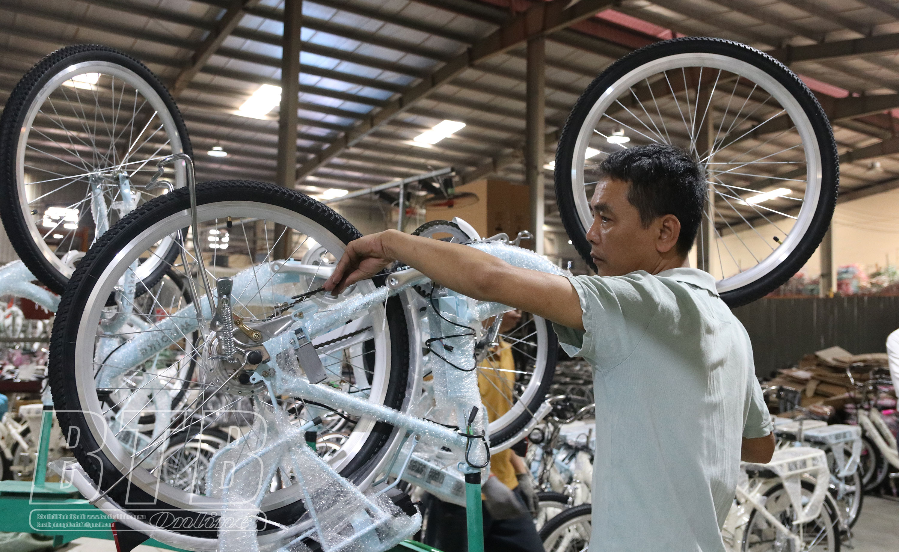 Lắp ráp xe đạp tại Công ty TNHH Sallway Việt Nam (cụm công nghiệp Quỳnh Côi, huyện Quỳnh Phụ).