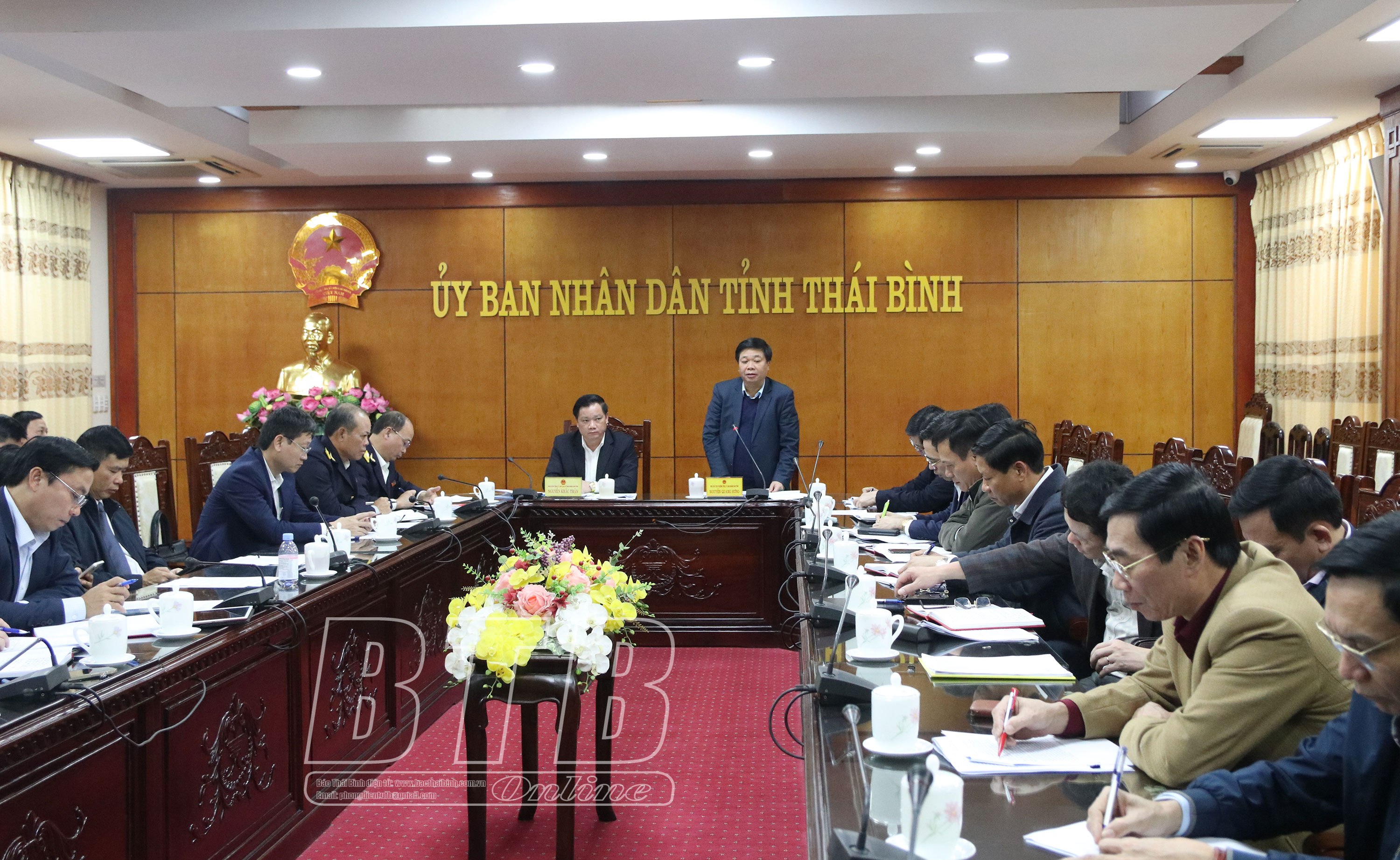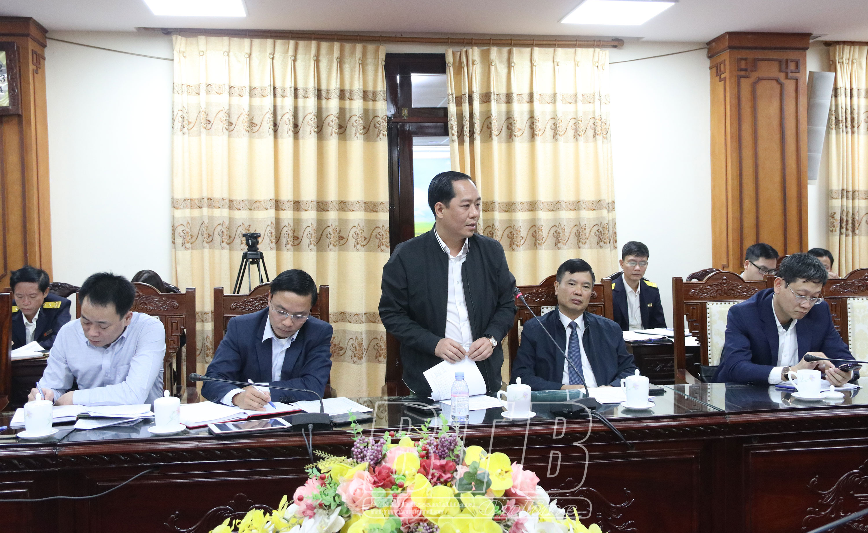 Các đồng chí: Nguyễn Khắc Thận, Phó Bí thư Tỉnh ủy, Chủ tịch UBND tỉnh; Nguyễn Quang Hưng, Ủy viên Ban Thường vụ Tỉnh ủy, Phó Chủ tịch thường trực UBND tỉnh, Trưởng ban Chỉ đạo thu NSNN tỉnh chủ trì cuộc họp. Dự họp có lãnh đạo một số sở, ngành và các huyện, thành phố.