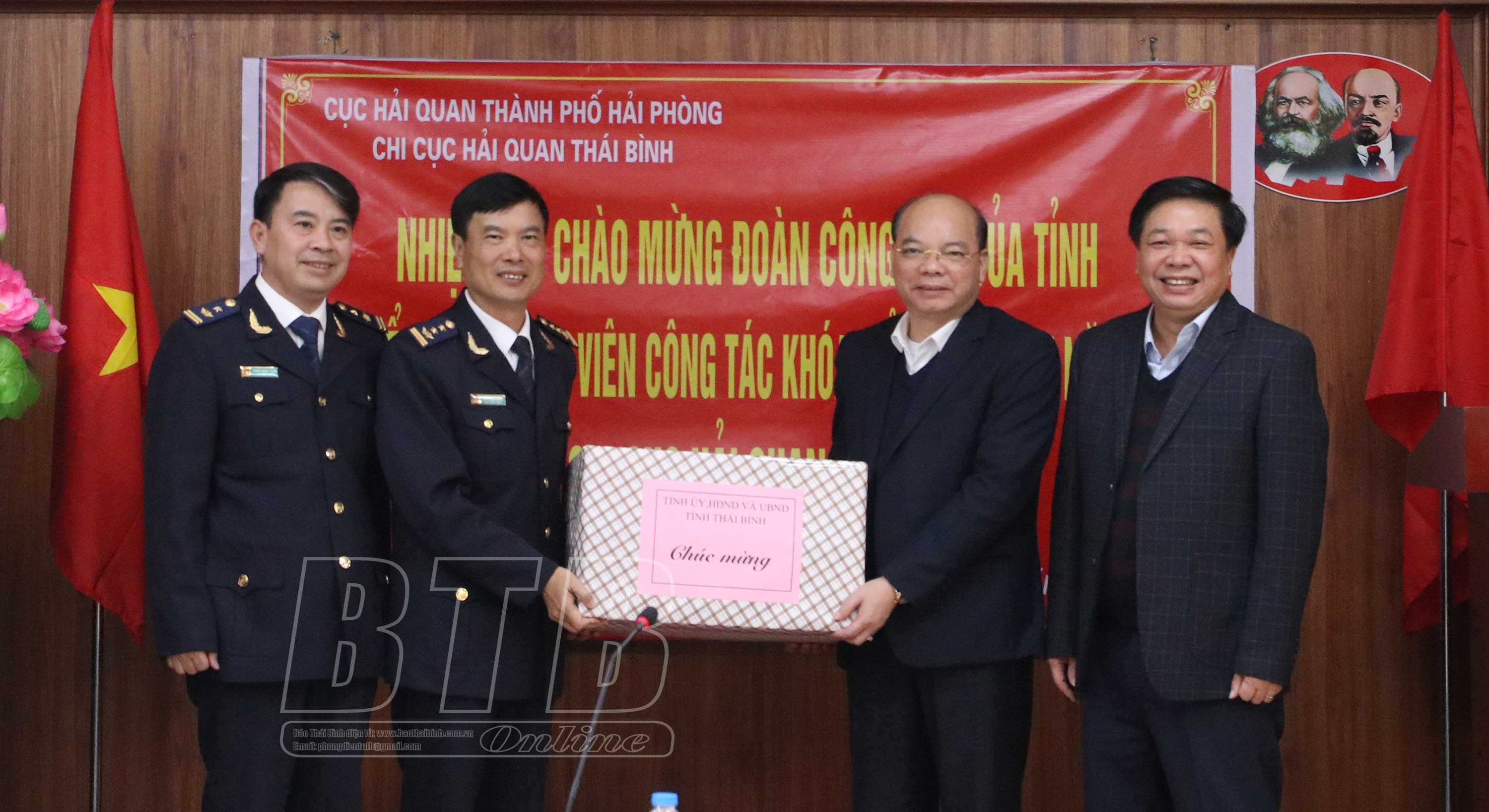 Các đồng chí lãnh đạo tỉnh thăm, động viên, tặng quà cán bộ, công nhân viên Chi cục Hải quan Thái Bình.