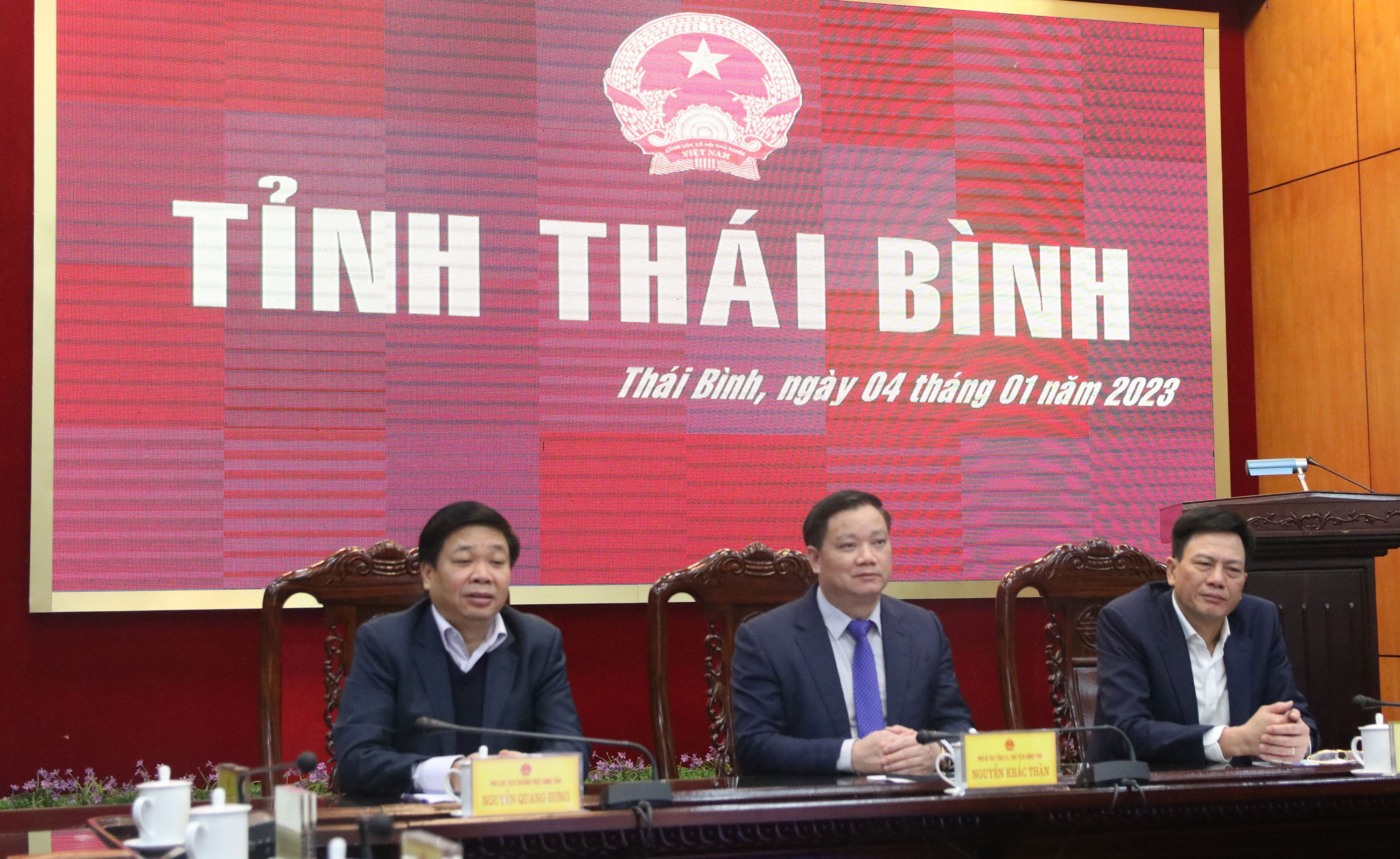 Dự hội nghị tại điểm cầu Thái Bình có các đồng chí: Ngô Đông Hải, Ủy viên Ban Chấp hành Trung ương Đảng, Bí thư Tỉnh ủy; Nguyễn Khắc Thận, Phó Bí thư Tỉnh ủy, Chủ tịch UBND tỉnh; các đồng chí Ủy viên Ban Thường vụ Tỉnh ủy, lãnh đạo UBND tỉnh, lãnh đạo một số sở, ban, ngành của tỉnh.