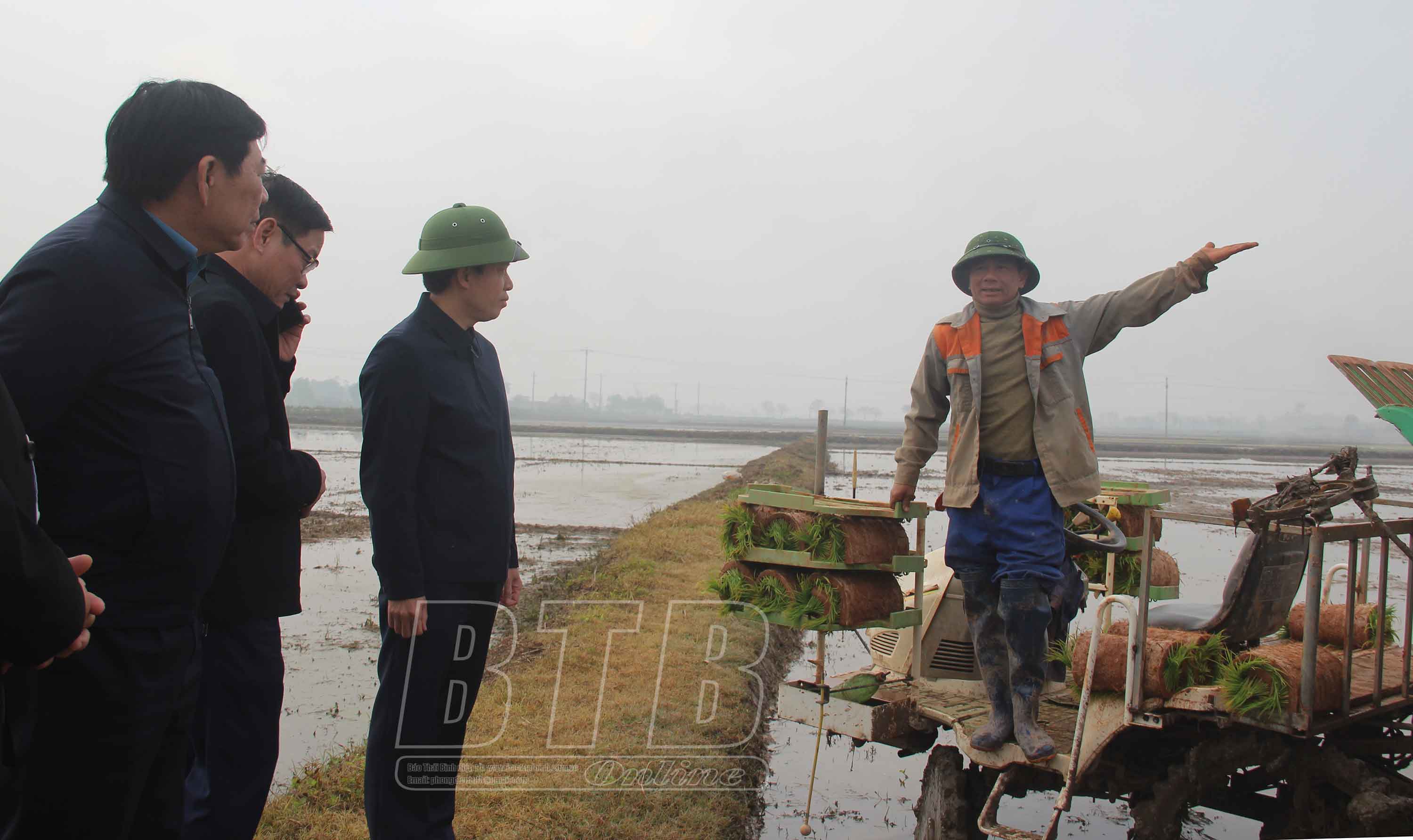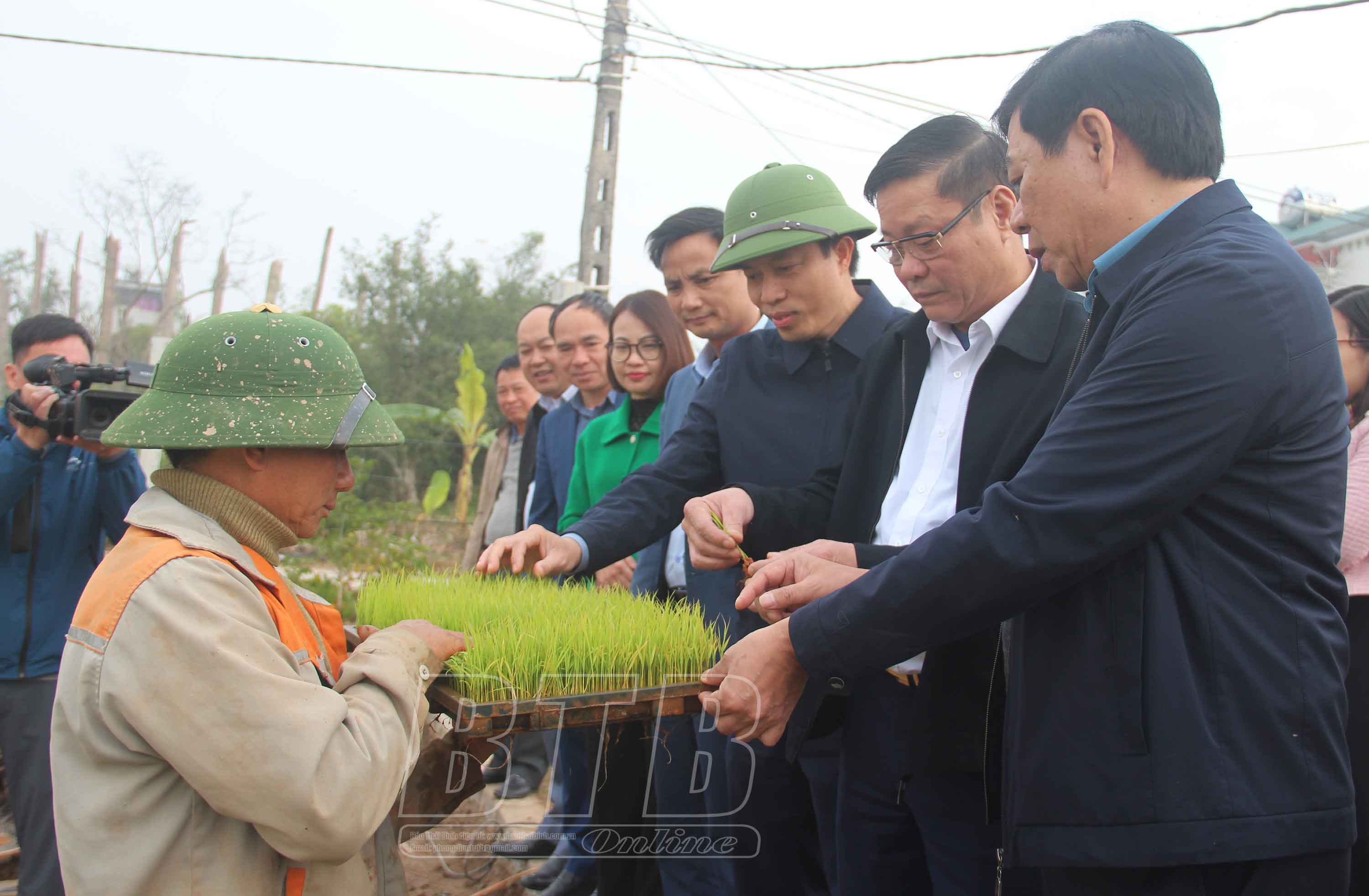 Đồng chí Phó Chủ tịch UBND tỉnh kiểm tra công tác chuẩn bị cho sản xuất vụ xuân tại xã Phú Châu (Đông Hưng).