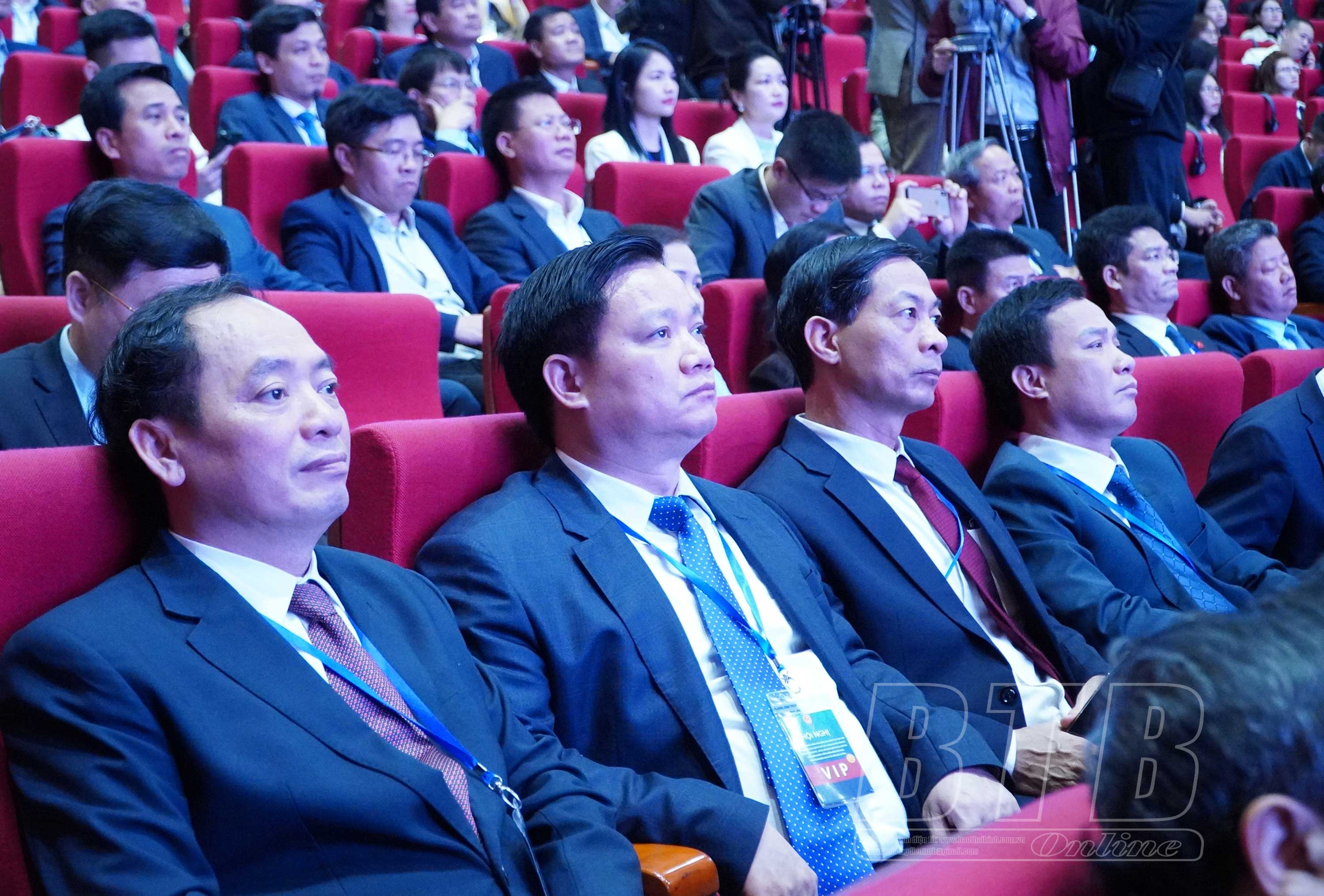 Các đồng chí: Đinh Tiến Dũng, Ủy viên Bộ Chính trị, Bí thư Thành ủy Hà Nội; Trần Hồng Hà, Ủy viên Ban Chấp hành Trung ương Đảng, Phó Thủ tướng Chính phủ; lãnh đạo đại diện một số bộ, ban, ngành trung ương; lãnh đạo các tỉnh, thành phố vùng đồng bằng sông Hồng dự hội nghị.
