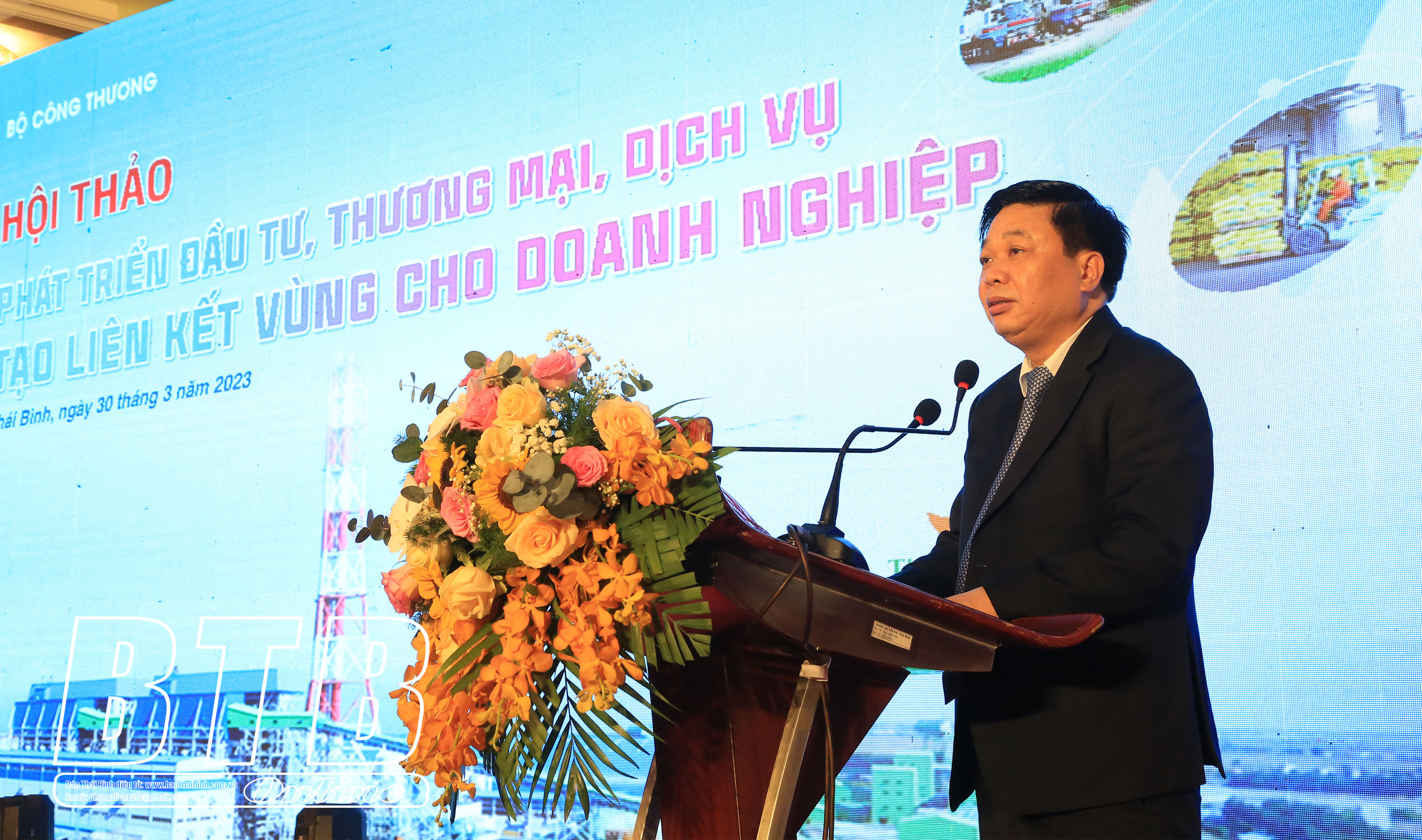 Đồng chí Phó Chủ tịch thường trực UBND tỉnh khẳng định, việc phát triển đầu tư, thương mại, dịch vụ, tạo liên kết vùng cho doanh nghiệp là một trong những nhiệm vụ trọng tâm trong hoạt động điều hành và thực hiện nhiệm vụ chính trị của các cấp, ngành, địa phương. Tỉnh Thái Bình mong muốn tiếp tục nhận được sự quan tâm hỗ trợ, giúp đỡ có hiệu quả của các bộ, ngành trung ương, các nhà đầu tư, cộng đồng doanh nghiệp. Cùng với quyết tâm chính trị cao của Đảng bộ, chính quyền và nhân dân trong tỉnh, tin tưởng Thái Bình là điểm đến lý tưởng của các doanh nghiệp, nhà đầu tư.