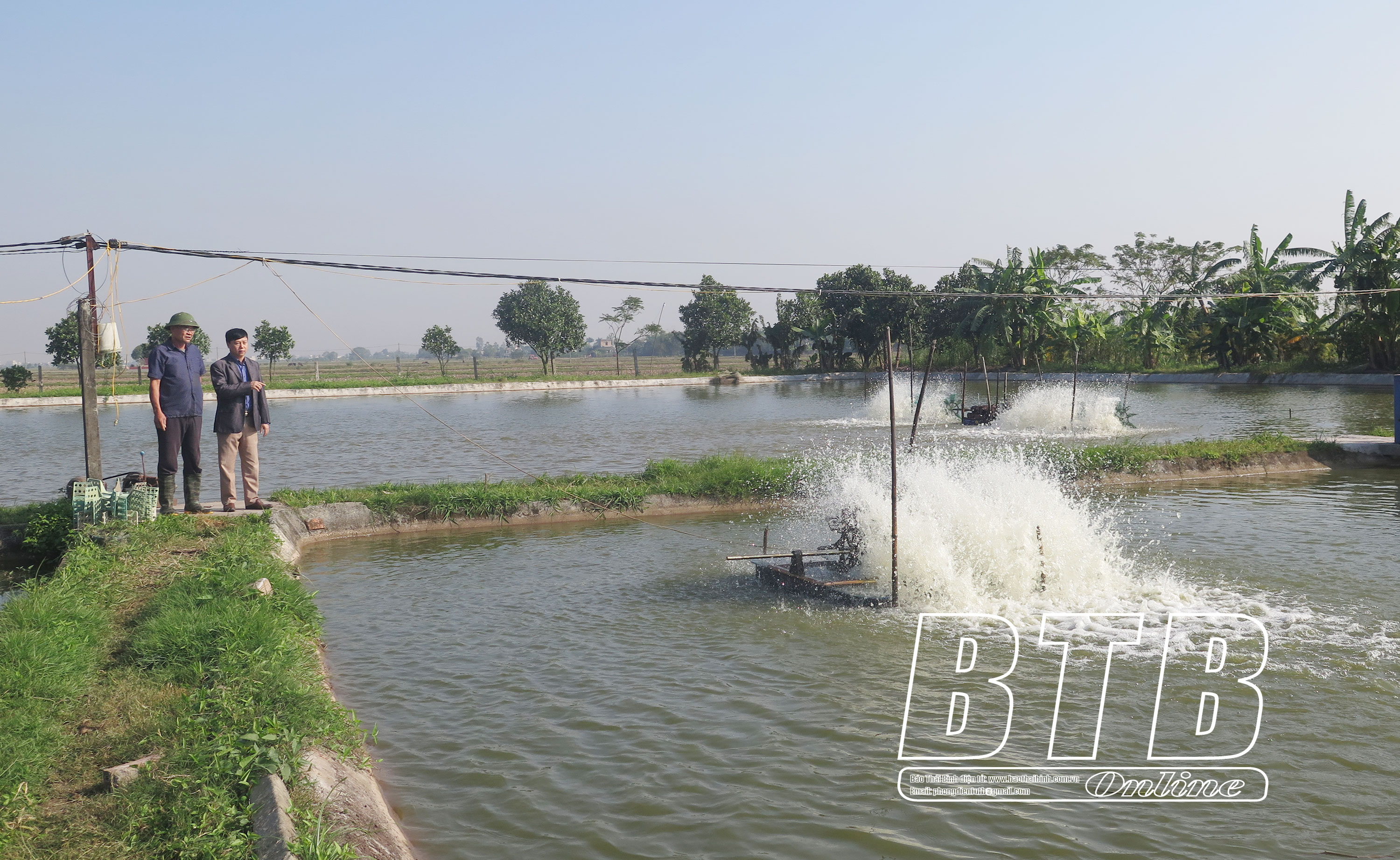 Mô hình nuôi cá trong ao bán nổi ở xã Vũ Bình (Kiến Xương).