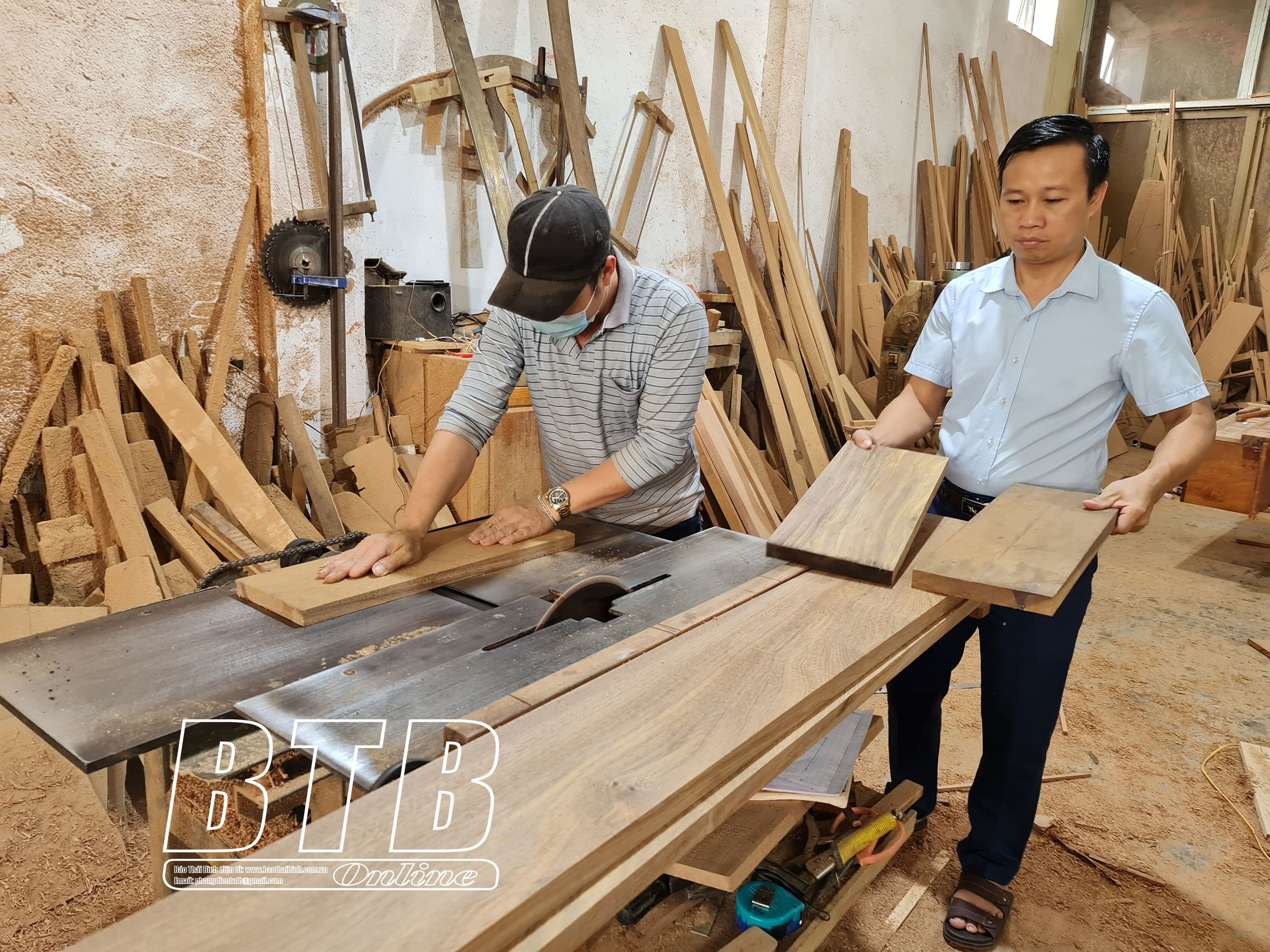 Đồ gỗ cũng làm một trong những ngành hàng thế mạnh của Việt Nam có thể đẩy mạnh xuất khẩu hiện nay. Trong ảnh: Sản xuất tại Công ty TNHH Đồ gỗ mỹ nghệ Khởi Tiếp, cụm công nghiệp Nguyên Xá, huyện Vũ Thư.
