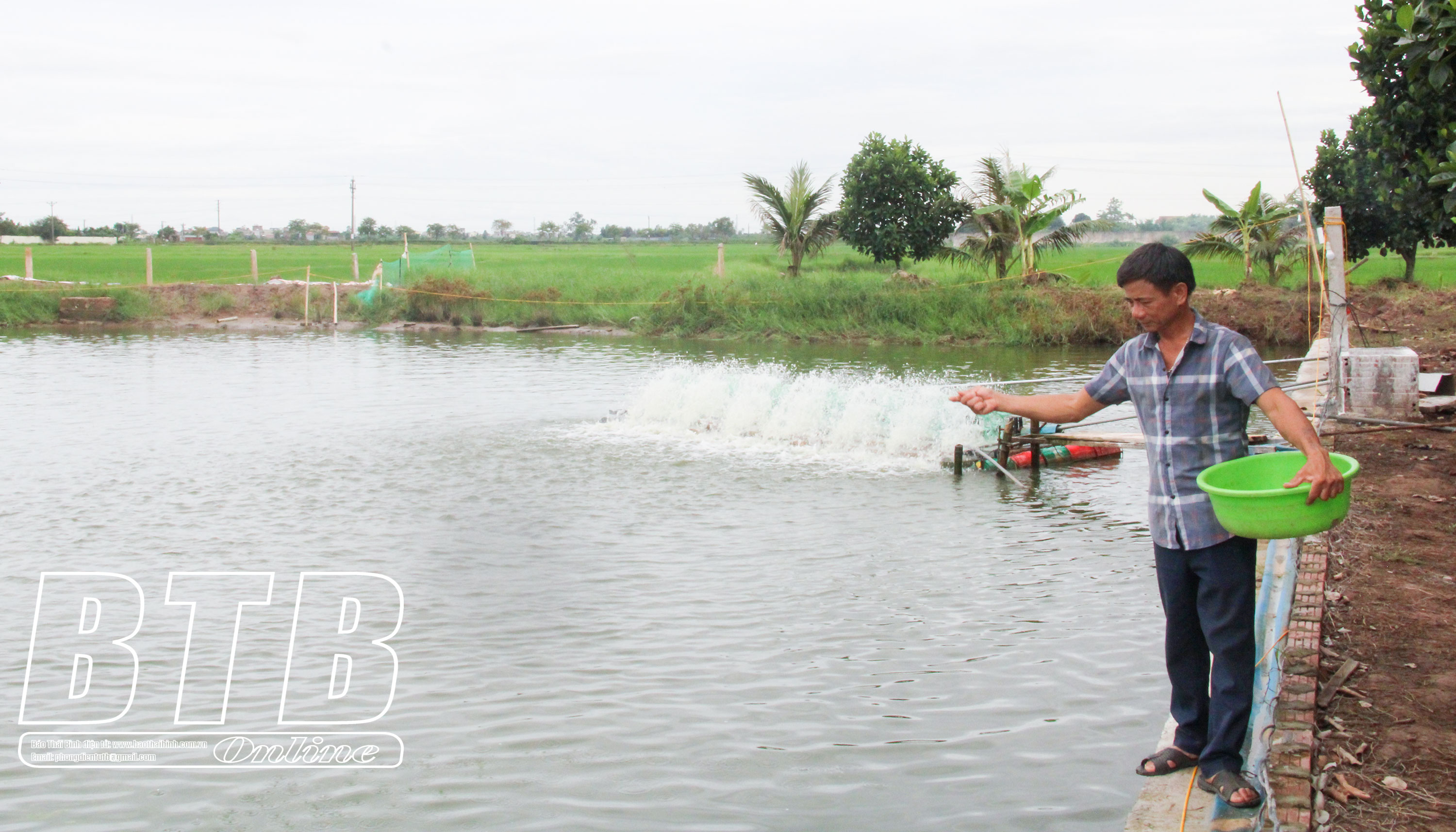 Ông Đặng Tất Tuân, xã Phú Châu (Đông Hưng) làm giàu từ mô hình nuôi tôm thẻ chân trắng trong nước ngọt.