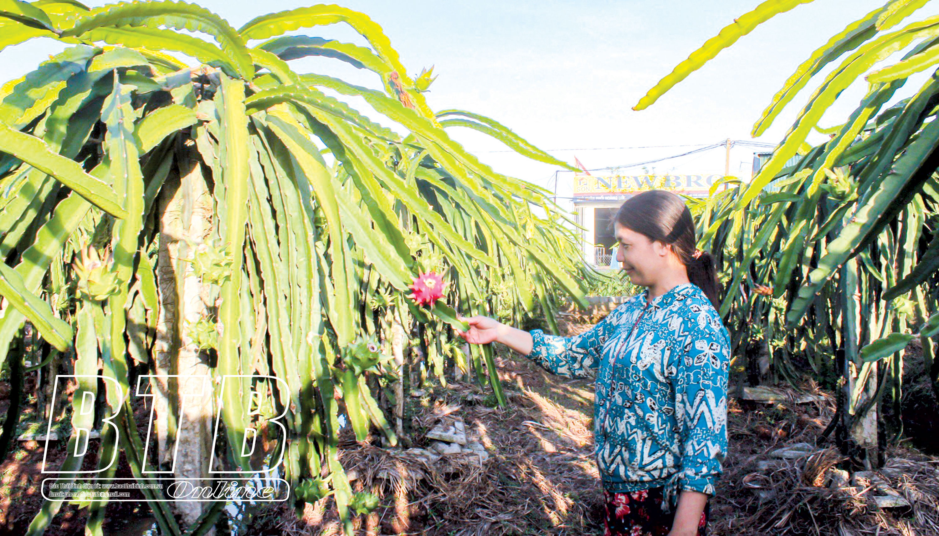 Với diện tích trên 1 mẫu thanh long, bà Nguyễn Thị Miên, xã Hồng Bạch (Đông Hưng) mỗi năm thu nhập hàng trăm triệu đồng.