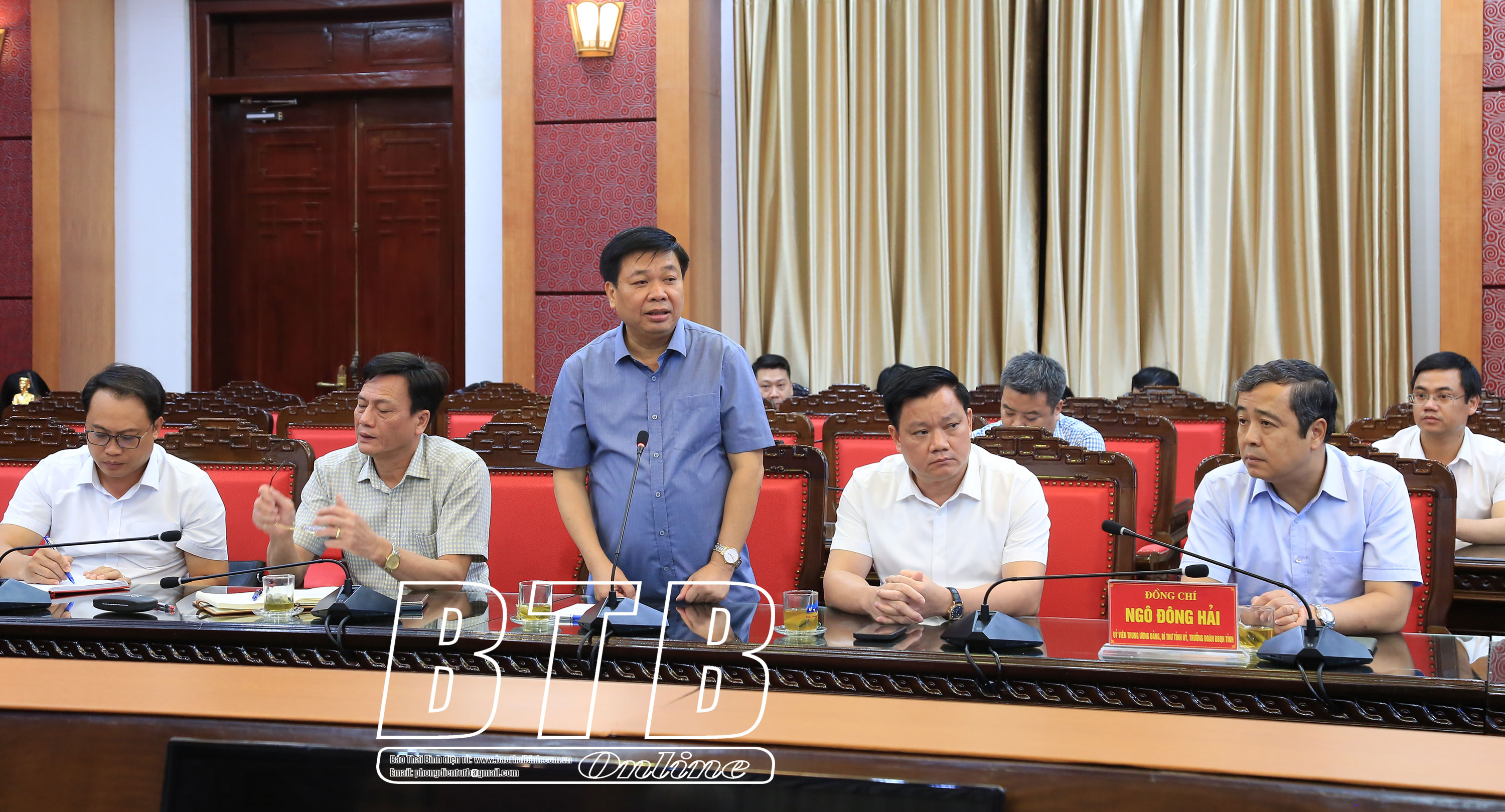 Các đồng chí: Ngô Đông Hải, Ủy viên Ban Chấp hành Trung ương Đảng, Bí thư Tỉnh ủy; Nguyễn Tiến Thành, Phó Bí thư thường trực Tỉnh ủy, Chủ tịch HĐND tỉnh; Nguyễn Khắc Thận, Phó Bí thư Tỉnh ủy, Chủ tịch UBND tỉnh; các đồng chí Ủy viên Ban Thường vụ Tỉnh ủy, lãnh đạo UBND tỉnh; lãnh đạo một số sở, ngành dự buổi làm việc.