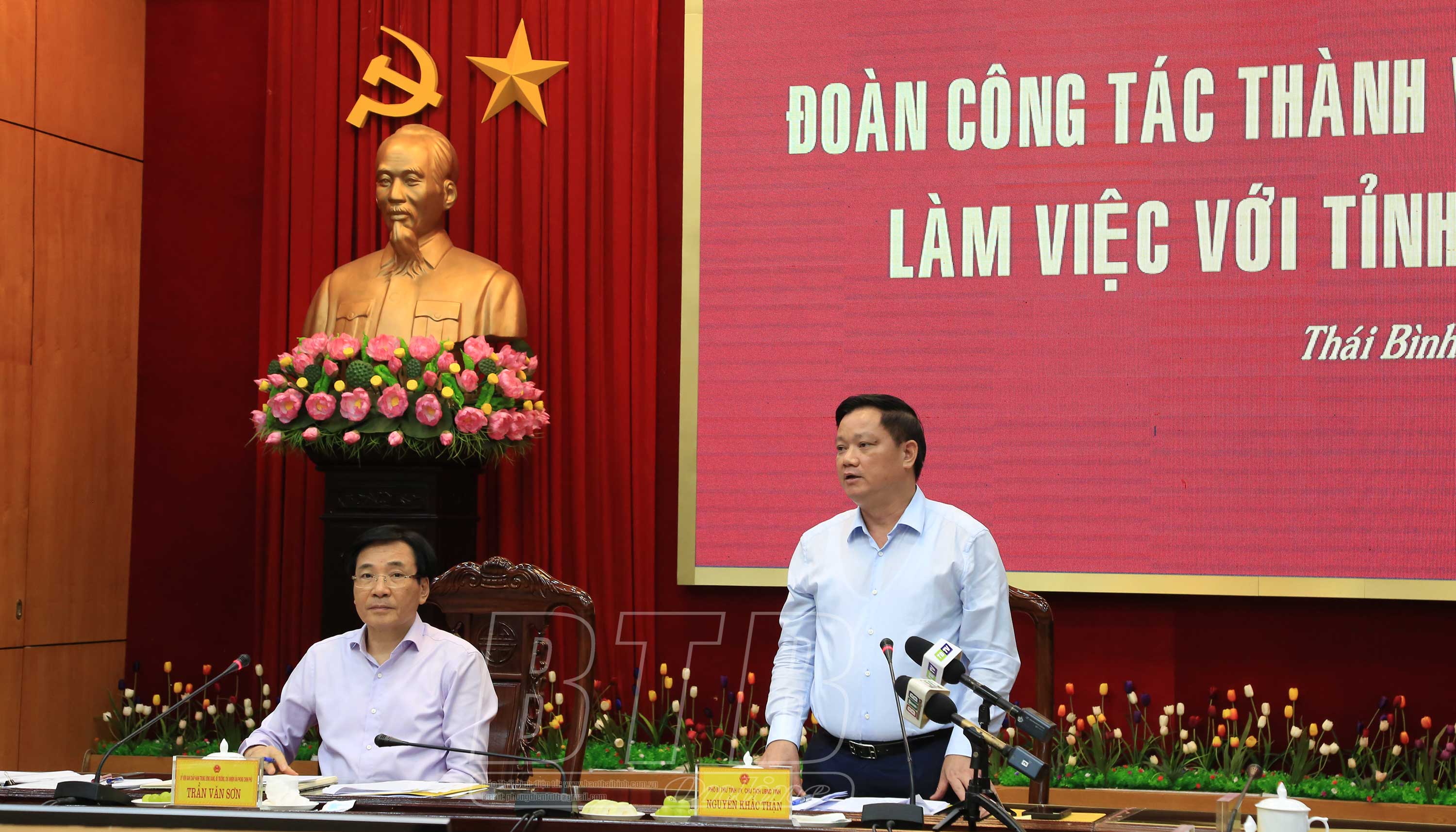 Phát biểu tại buổi làm việc, đồng chí Nguyễn Khắc Thận, Phó Bí thư Tỉnh ủy, Chủ tịch UBND tỉnh nhấn mạnh: Nhờ sự quan tâm, hỗ trợ, tạo điều kiện của Chính phủ, Thủ tướng Chính phủ và các bộ, ngành trung ương cũng như sự đoàn kết, nỗ lực của tỉnh nên Thái Bình đã đạt được nhiều kết quả rất quan trọng trên các lĩnh vực như: phát triển công nghiệp, nông nghiệp, thương mại dịch vụ, giải ngân vốn đầu tư công… Đặc biệt, tỉnh Thái Bình đang tập trung đẩy mạnh thu hút đầu tư, phát triển hạ tầng, nhất là hạ tầng các khu, cụm công nghiệp, khu kinh tế, hạ tầng giao thông kết nối, tạo động lực cho sự phát triển của tỉnh.