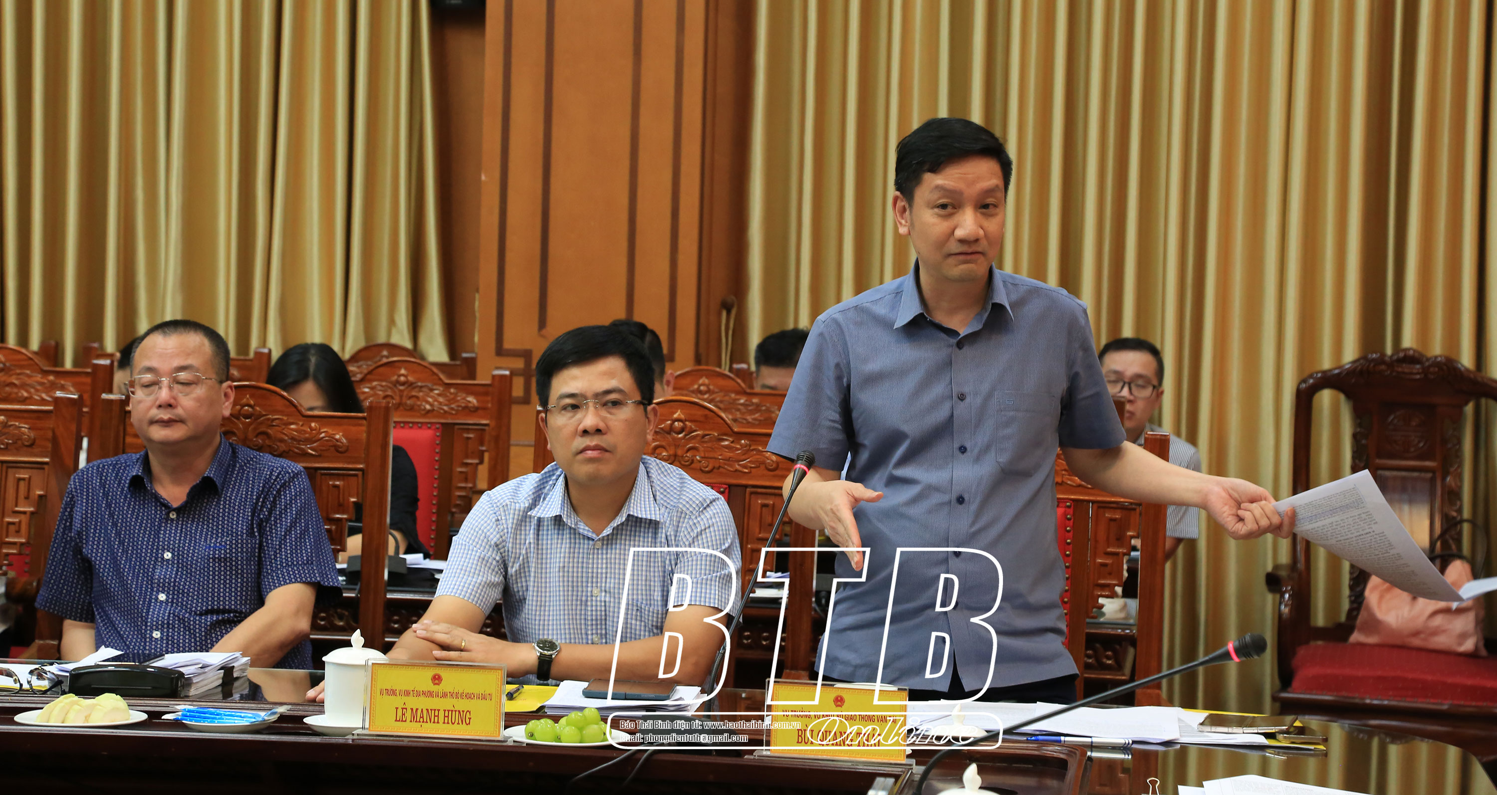 Lãnh đạo Ban Quản lý dự án đầu tư xây dựng các công trình giao thông tỉnh báo cáo những khó khăn, vướng mắc của dự án tuyến đường bộ ven biển tỉnh Thái Bình.