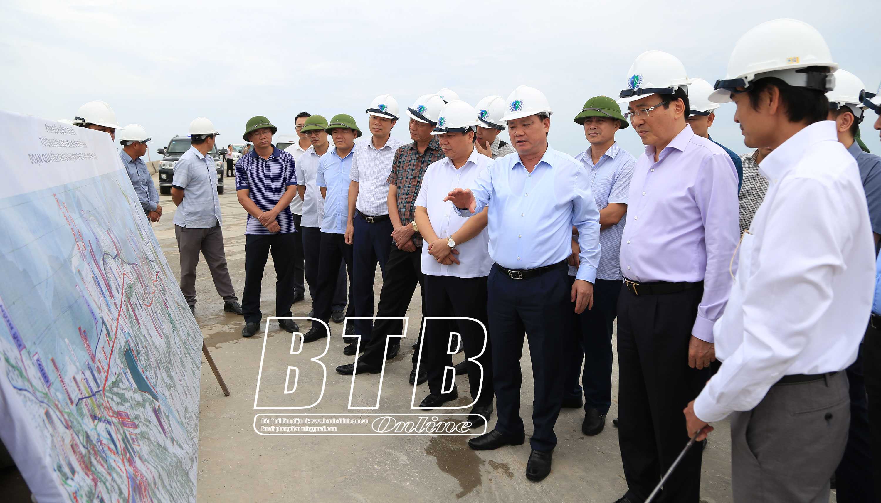 Đoàn công tác thành viên Chính phủ và các đồng chí lãnh đạo tỉnh khảo sát thực tế tuyến đường bộ ven biển tỉnh Thái Bình.