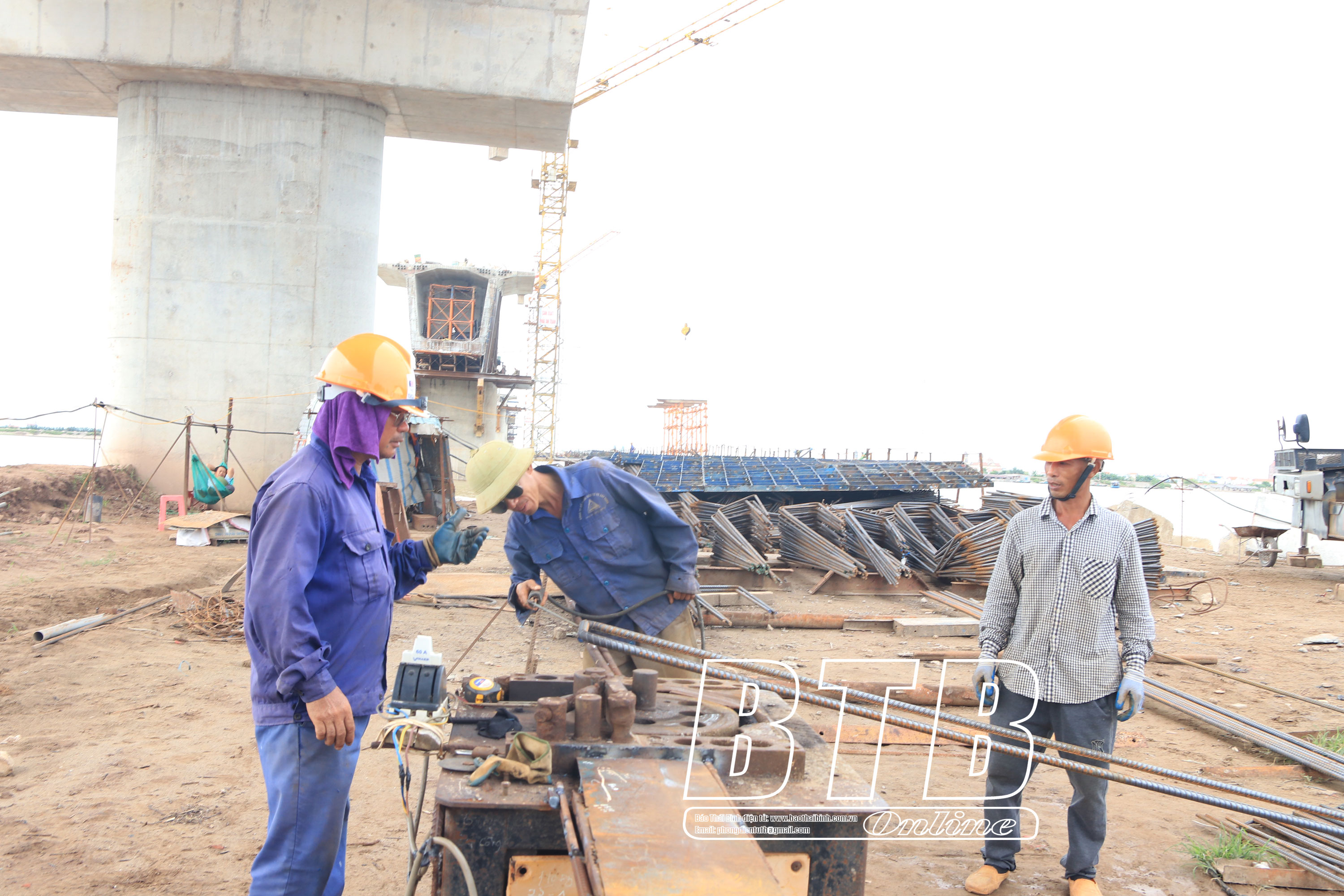 Thi công cầu sông Hồng, thuộc tuyến đường bộ ven biển tỉnh Thái Bình.
