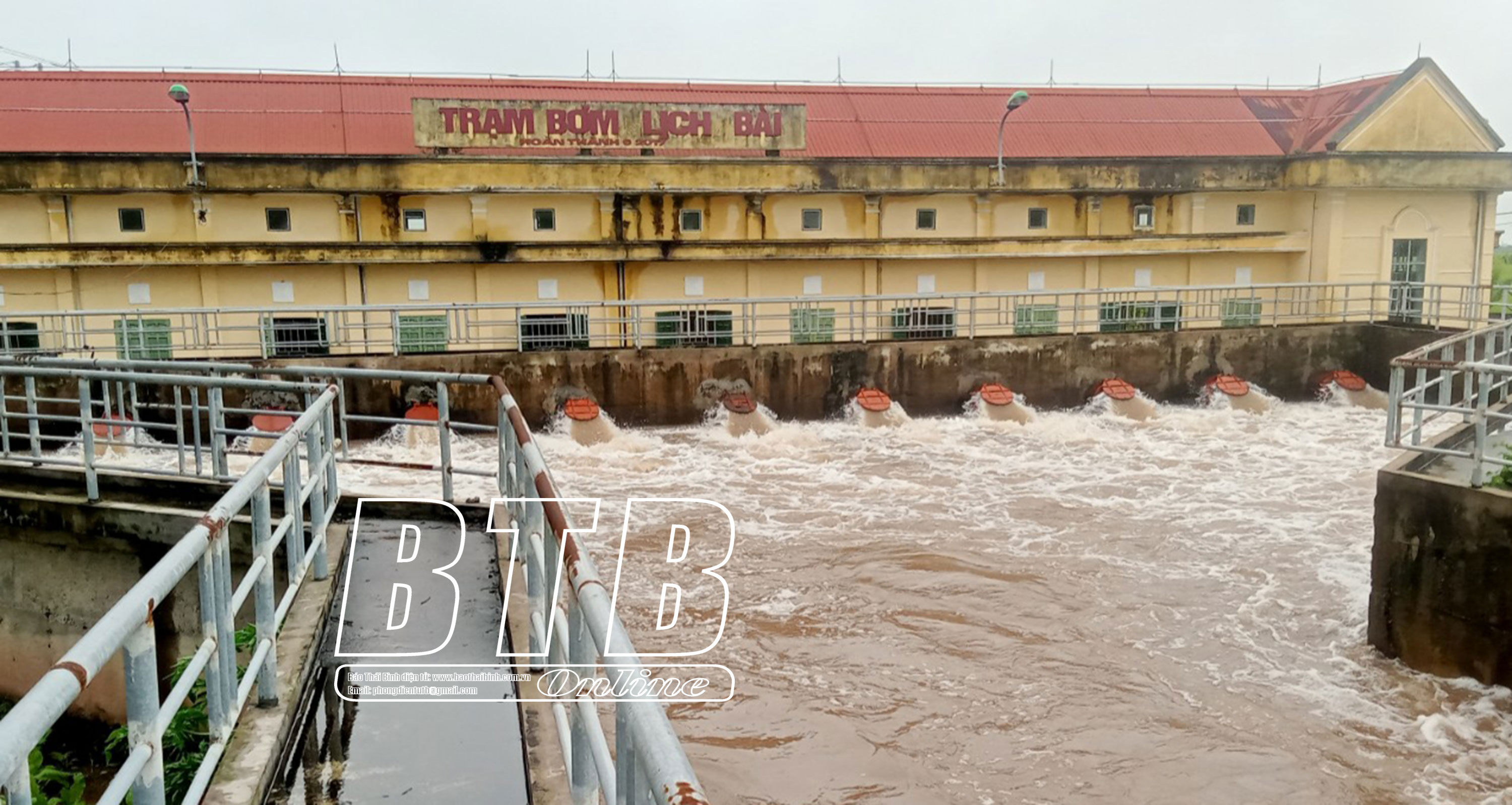 Trạm bơm Lịch Bài, xã Vũ Hòa hoạt động hết công suất để tiêu thoát nước. Ảnh: Thu Thủy