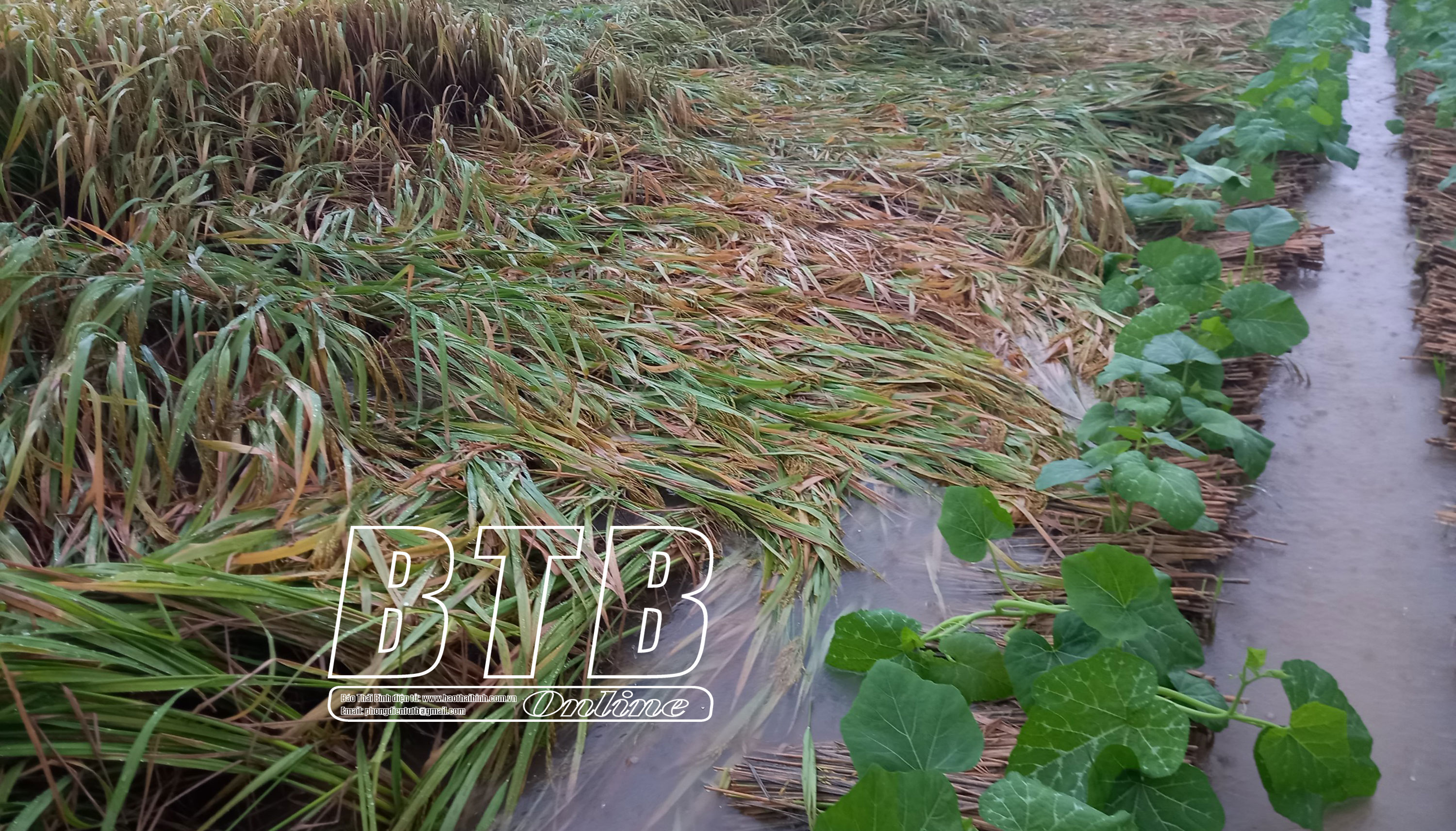 Tính đến ngày 28/9, huyện Thái Thụy có 2.300ha/12.850ha, chiếm gần 20% tổng diện tích lúa mùa của toàn huyện bị đổ và 350ha cây màu vụ đông mới trồng bị ảnh hưởng do mưa lớn kéo dài những ngày qua. Để giảm thiểu những thiệt hại do mưa lớn gây ra, UBND huyện đã chỉ đạo UBND các xã, thị trấn, các HTX SXKD DVNN trên địa bàn huyện khẩn trương đôn đốc, hướng dẫn người dân xuống đồng, bó dựng lúa.