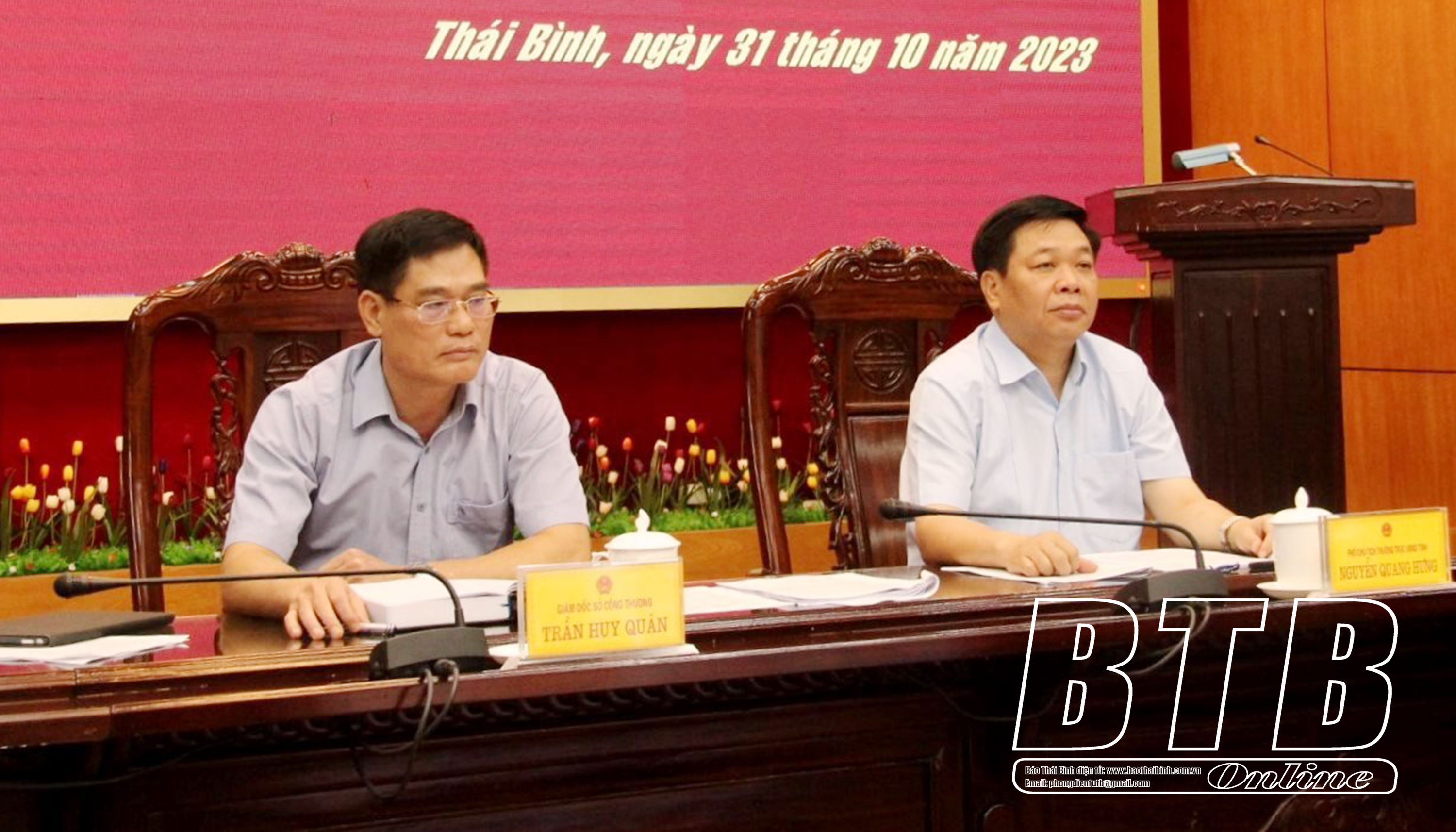 Đồng chí Nguyễn Quang Hưng, Ủy viên Ban Thường vụ Tỉnh ủy, Phó Chủ tịch thường trực UBND tỉnh dự tại điểm cầu Thái Bình.