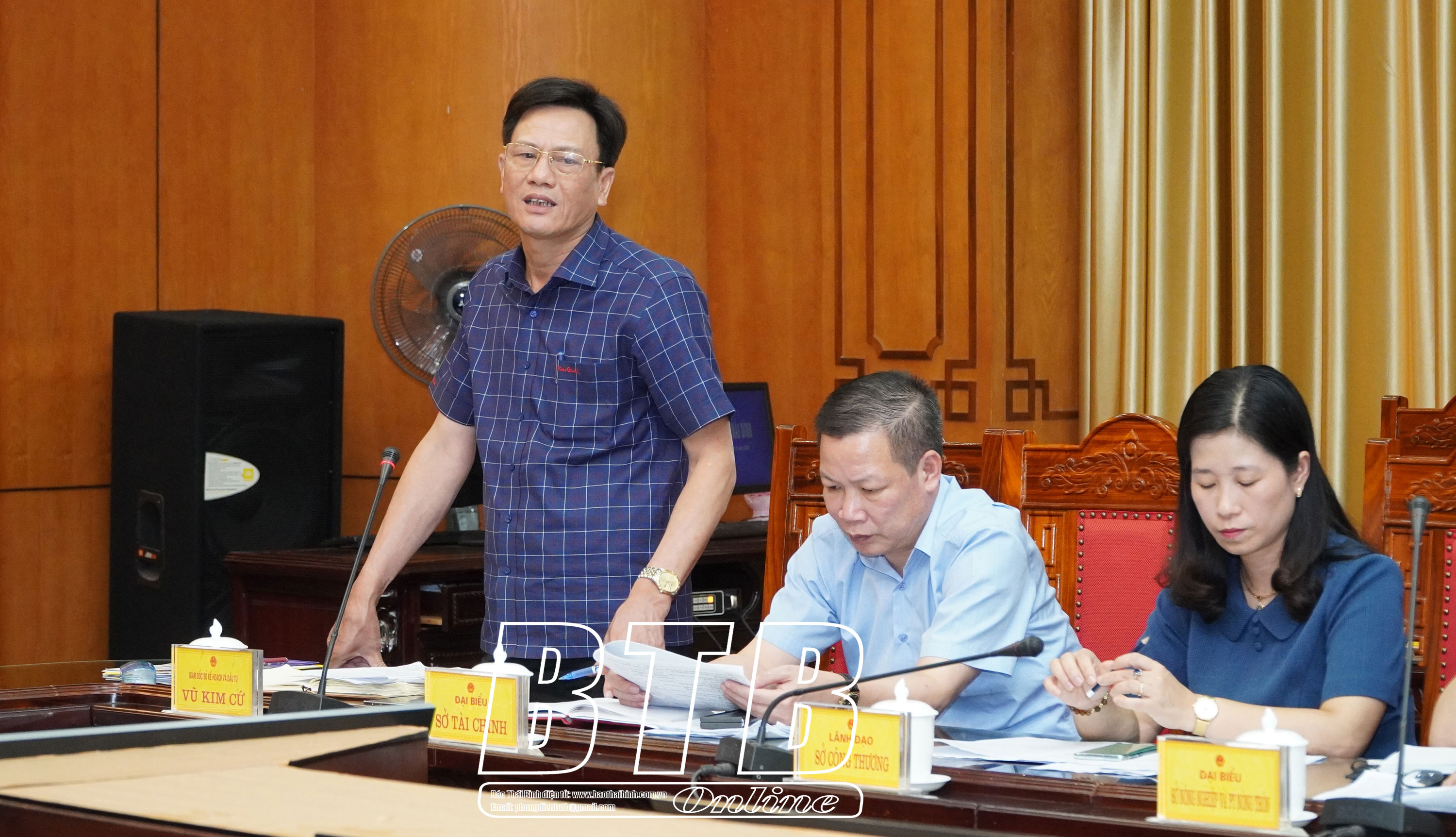 Đồng chí Vũ Kim Cứ, Ủy viên Ban Thường vụ Tỉnh ủy, Giám đốc Sở Kế hoạch và Đầu tư phát biểu tại cuộc họp.