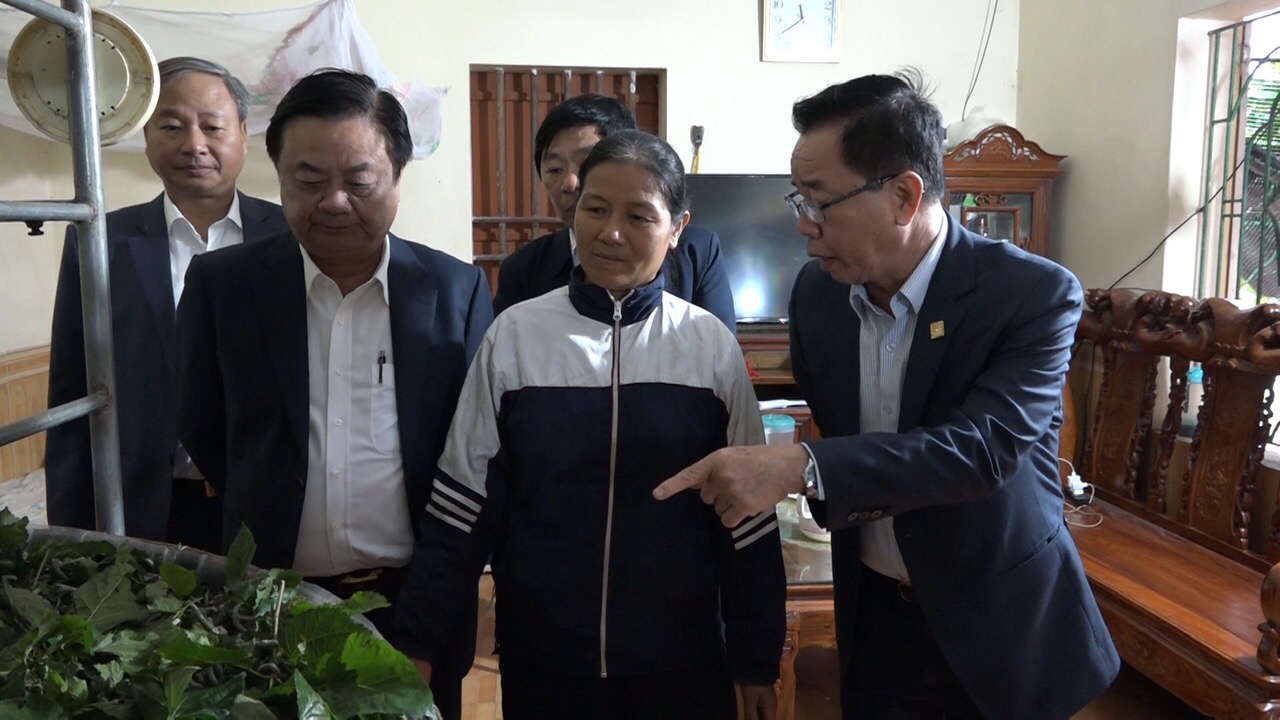 Bộ trưởng Bộ Nông nghiệp và Phát triển nông thôn Lê Minh Hoan cùng đoàn công tác tham quan mô hình nuôi tằm xã Hồng Phong, Vũ Thư.