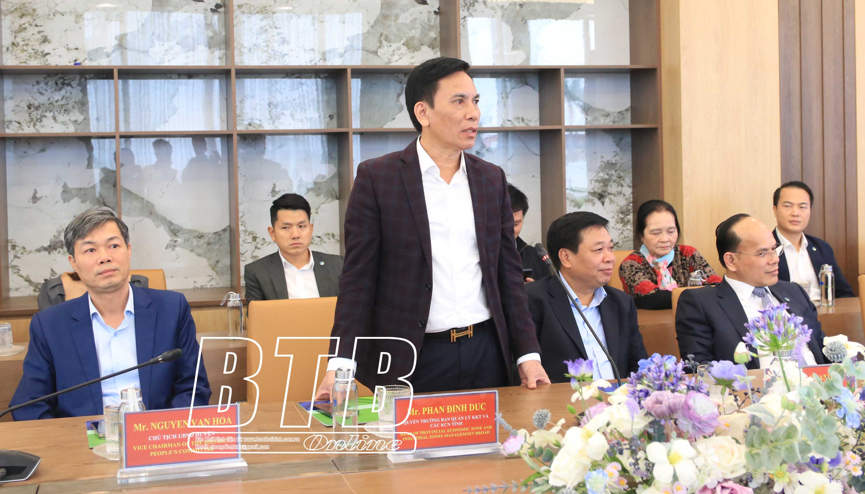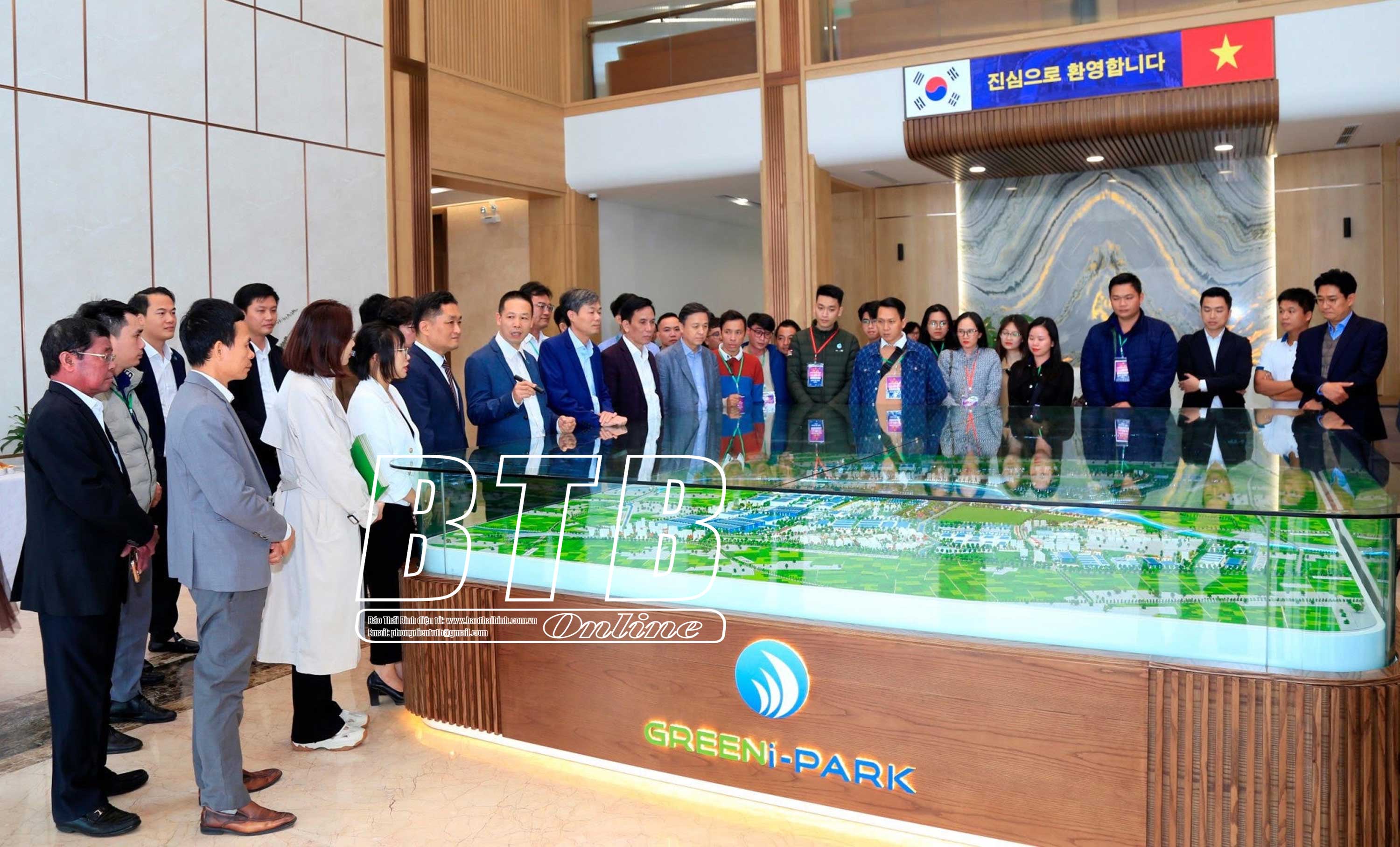 Tiếp và làm việc với đoàn có đồng chí Nguyễn Quang Hưng, Ủy viên Ban Thường vụ Tỉnh ủy, Phó Chủ tịch thường trực UBND tỉnh; lãnh đạo Ban Quản lý Khu kinh tế và các khu công nghiệp tỉnh; lãnh đạo huyện Thái Thụy và nhà đầu tư hạ tầng KCN, Công ty Cổ phần Green i-Park.