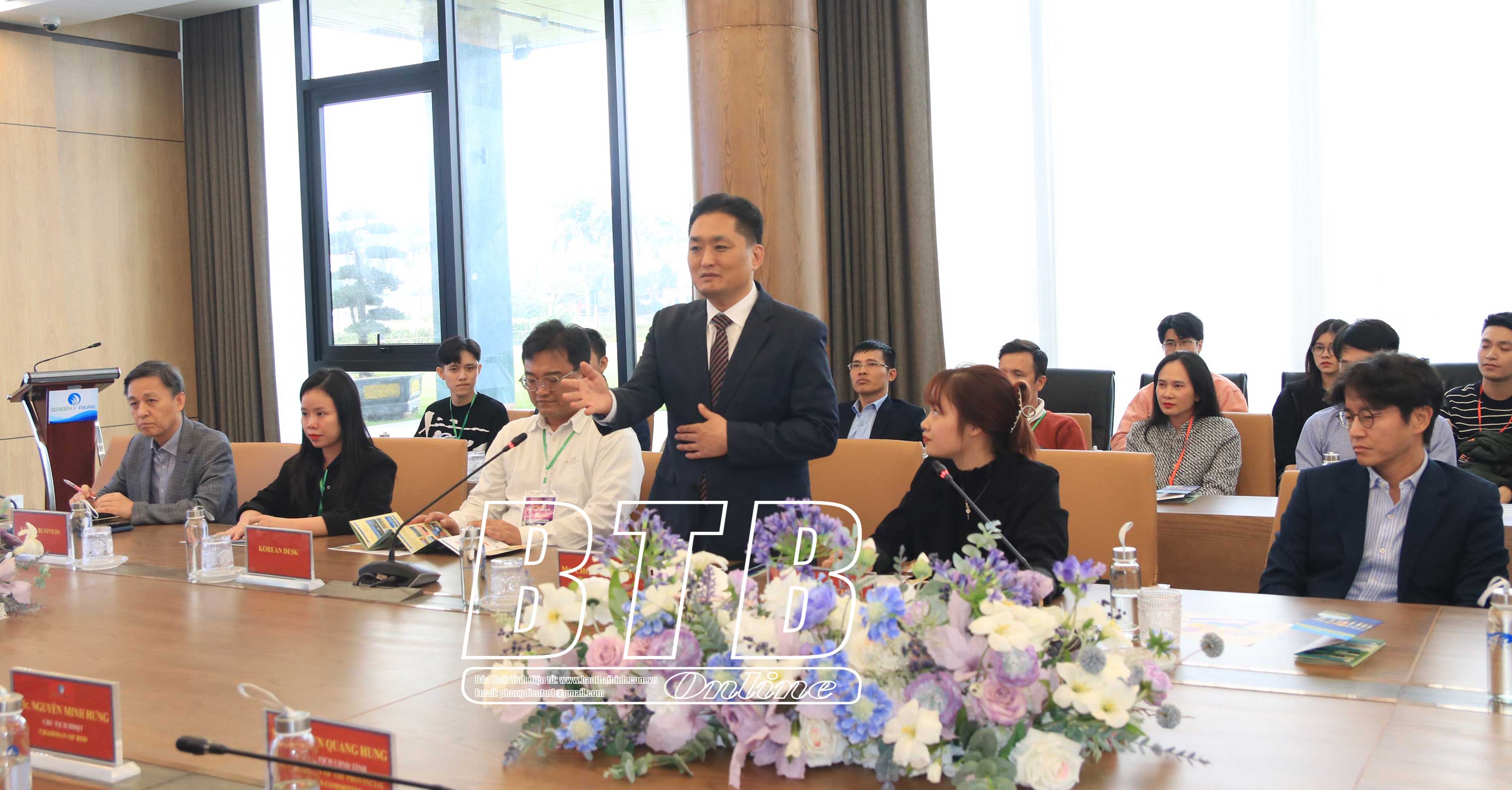 Phát biểu tại buổi làm việc, lãnh đạo Ban Quản lý Khu kinh tế và các khu công nghiệp tỉnh hoan nghênh đoàn doanh nghiệp của Hàn Quốc đã quan tâm và đi thực địa tìm hiểu KCN Liên Hà Thái cũng như cơ hội đầu tư tại Thái Bình. Liên Hà Thái là KCN đầu tiên của Khu kinh tế Thái Bình được tỉnh chỉ đạo quyết liệt giải phóng mặt bằng và đầu tư hạ tầng hiện đại nhằm tạo ra địa bàn chiến lược thu hút đầu tư. Ngoài ra, tỉnh Thái Bình đã chủ động đẩy nhanh các quy trình, thủ tục cấp giấy chứng nhận đầu tư, tạo điều kiện cho các doanh nghiệp vào đầu tư tại KCN Liên Hà Thái. Với lợi thế về vị trí địa lý và khả năng kết nối với các huyết mạch giao thông từ Thái Bình đi các tỉnh, thành phố phía Bắc, KCN Liên Hà Thái có lợi thế đặc biệt giúp cho các nhà đầu tư vào hoạt động thuận lợi. Ngoài ra, huyện Thái Thụy cũng có nguồn lao động dồi dào; tỉnh đã làm việc với các cơ quan chức năng bảo đảm nguồn điện phục vụ sản xuất cho KCN… cũng là điều kiện tốt giúp cho nhà đầu tư yên tâm đầu tư, sản xuất, kinh doanh.