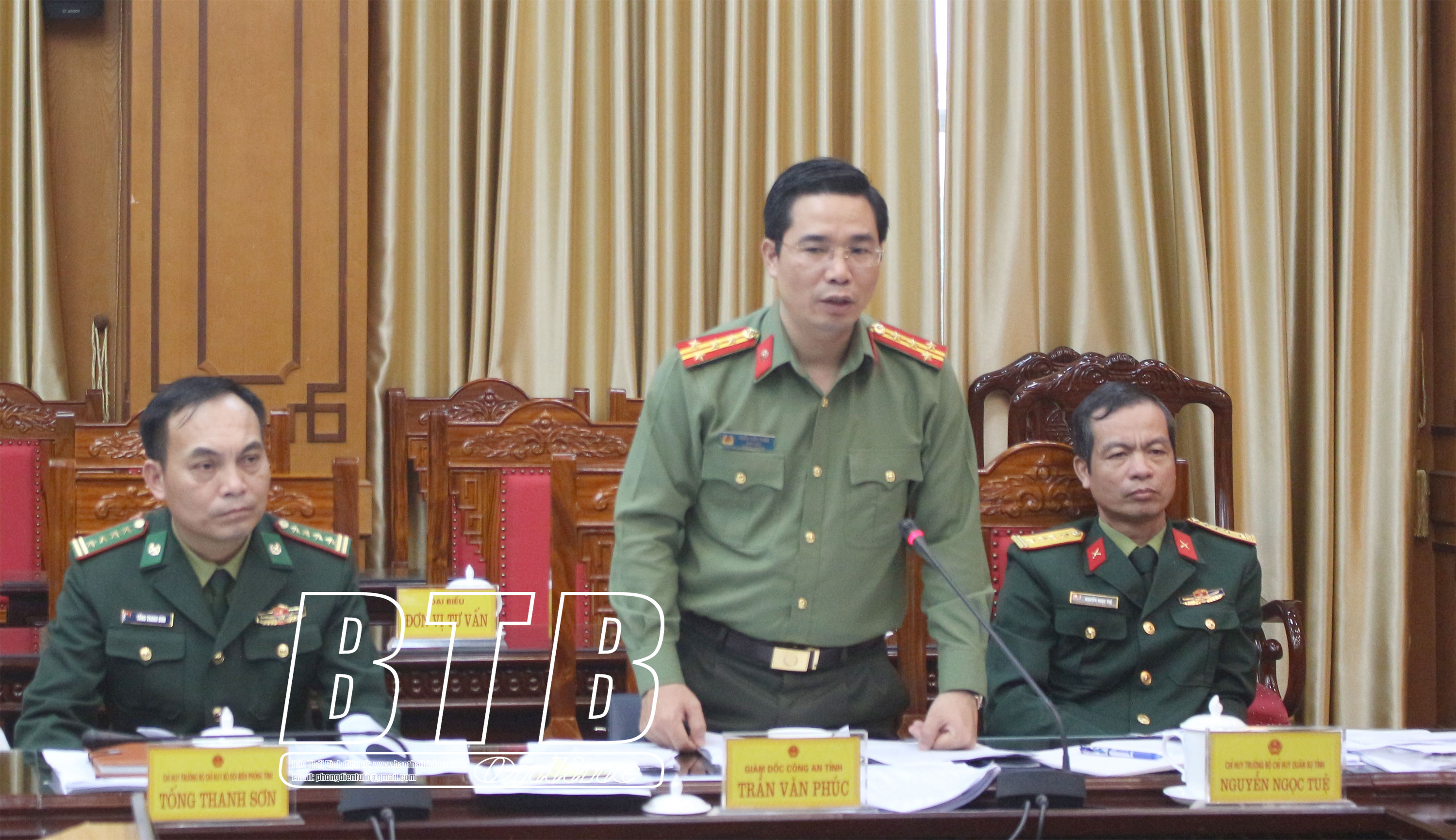Lãnh đạo Công an tỉnh phát biểu tại cuộc họp.