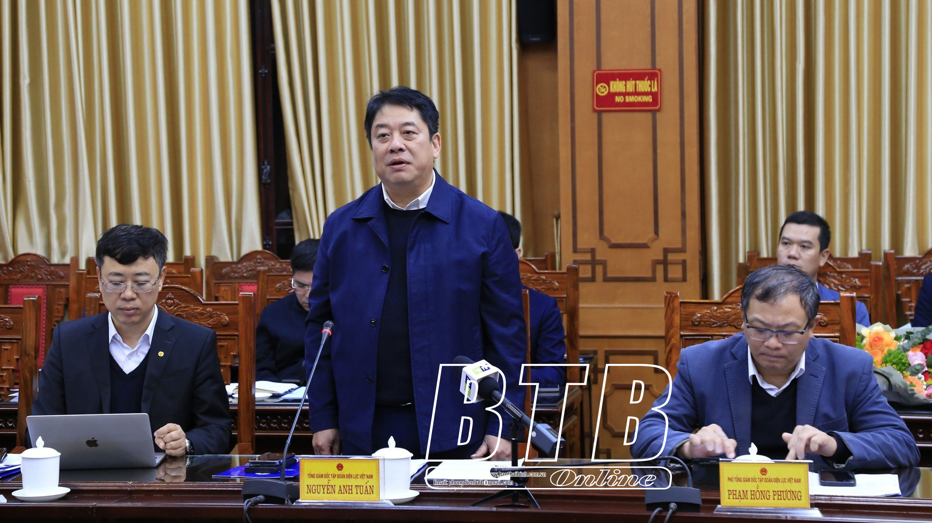 Phát biểu tại buổi làm việc, đồng chí Nguyễn Anh Tuấn, Tổng giám đốc EVN trân trọng cảm ơn tỉnh Thái Bình đã tích cực đồng hành, tháo gỡ khó khăn, vướng mắc cho các dự án điện trên địa bàn; đồng thời mong muốn tiếp tục nhận được sự quan tâm, hỗ trợ của tỉnh để ngành điện triển khai thực hiện các dự án đạt hiệu quả cao.