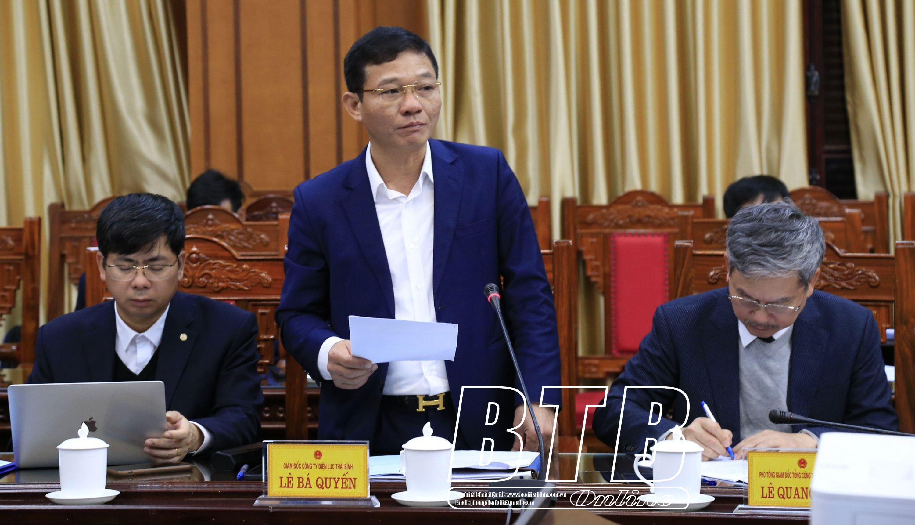 Phát biểu tại buổi làm việc, đồng chí Nguyễn Khắc Thận, Phó Bí thư Tỉnh ủy, Chủ tịch UBND tỉnh khẳng định: Những năm gần đây, Thái Bình đã có bước phát triển rất mạnh mẽ. Năm 2023, tình hình phát triển kinh tế - xã hội của tỉnh đạt nhiều kết quả tích cực, tốc độ tăng trưởng tổng sản phẩm trên địa bàn (GRDP) đạt 7,37%, thu hút đầu tư có nhiều khởi sắc đặc biệt là thu hút đầu tư trực tiếp nước ngoài cán mốc 3 tỷ USD, đứng thứ 5 toàn quốc. Với sự phát triển tích cực đó, việc cung ứng điện kịp thời là việc làm rất cần thiết; chính vì thế, đồng chí Phó Bí thư Tỉnh ủy, Chủ tịch UBND tỉnh bày tỏ mong muốn thông qua buổi làm việc, việc cung ứng điện cũng như thực hiện các dự án điện trên địa bàn tỉnh được tốt hơn; EVN tiếp tục đồng hành, hỗ trợ trong việc cung ứng điện cũng như thực hiện các dự án điện để các doanh nghiệp trên địa bàn tỉnh có đủ nguồn điện phục vụ phát triển sản xuất.
