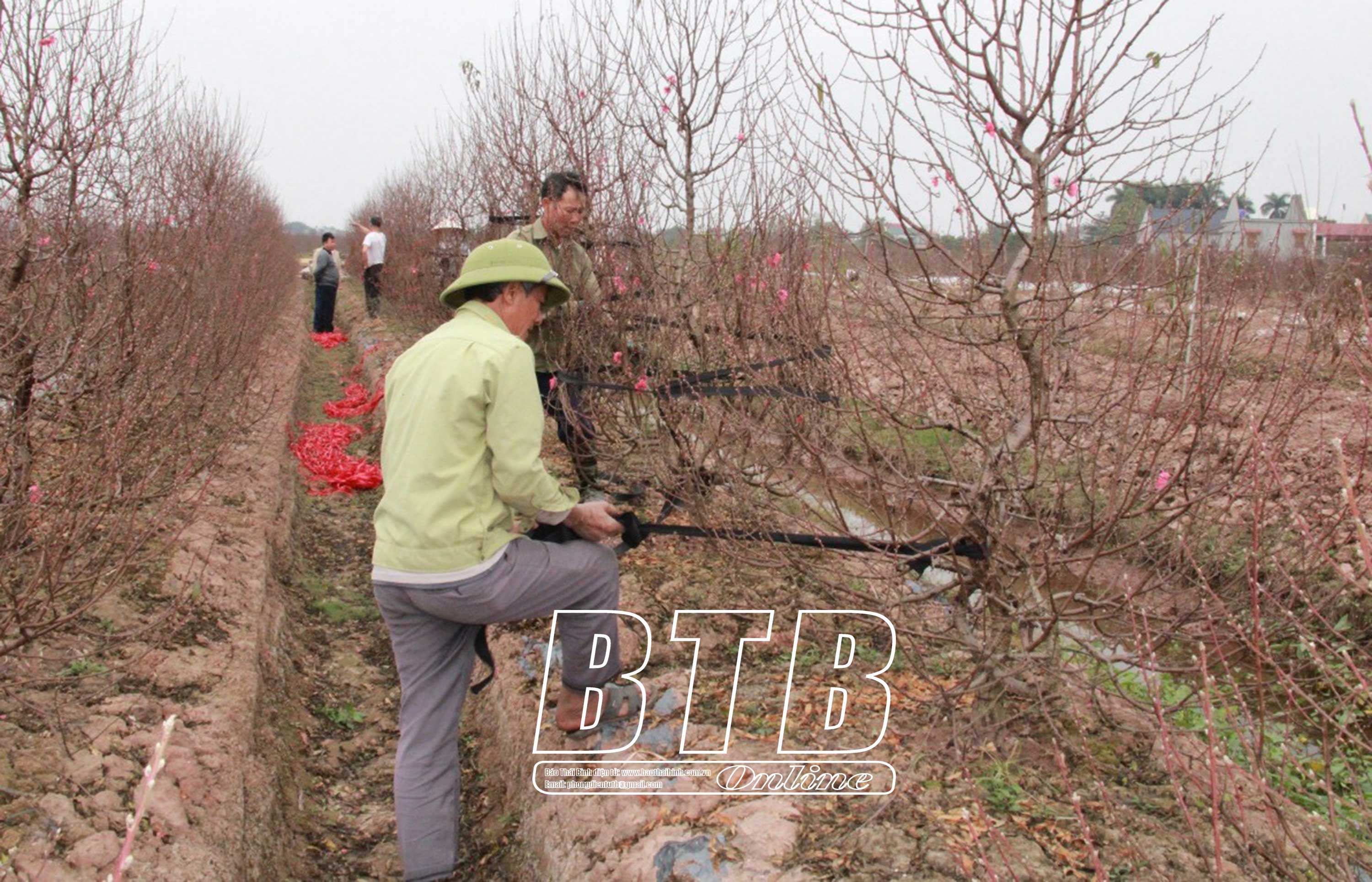 Người trồng đào ở xã Minh Tân chuẩn bị đánh đào cho thương lái đưa đi các tỉnh phục vụ người dân mua về chơi tết.