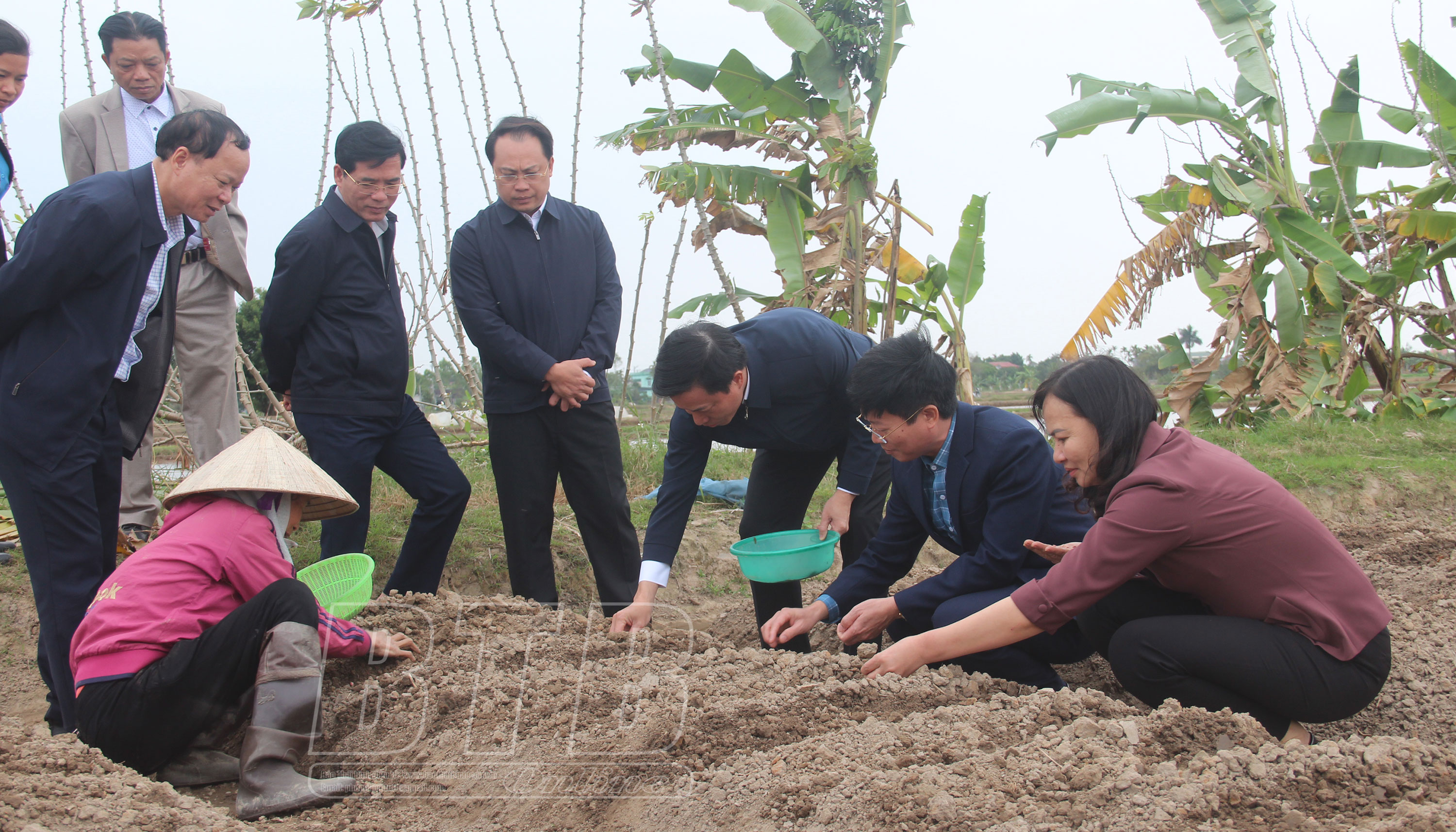 Đồng chí Phó Chủ tịch UBND tỉnh thăm, động viên nông dân xã An Ninh (Quỳnh Phụ) gieo trồng cây màu xuân.