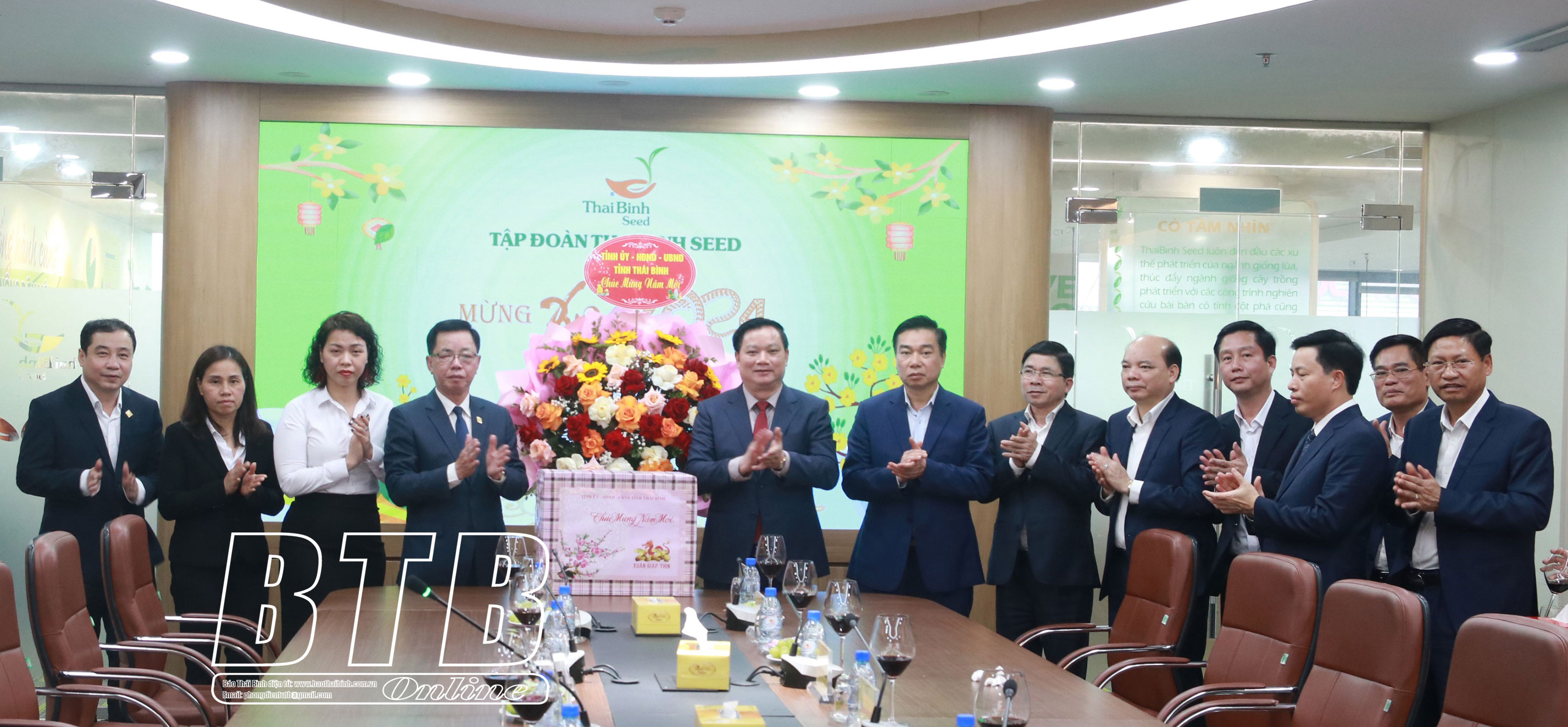 Các đồng chí lãnh đạo tỉnh thăm, động viên Công ty Cổ phần Tập đoàn ThaiBinh Seed.