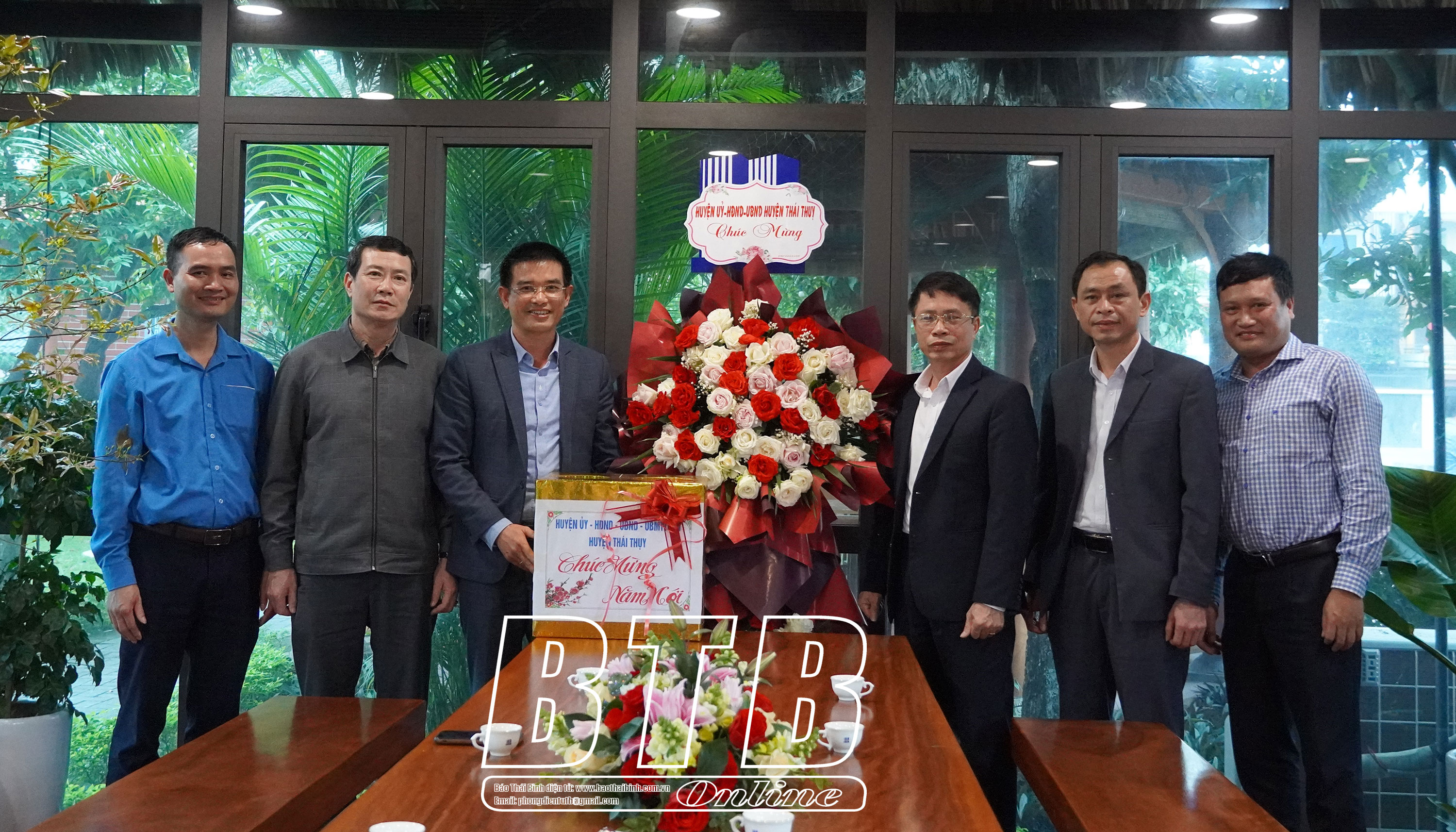 Lãnh đạo huyện Thái Thụy thăm, tặng quà Công ty TNHH Đầu tư phát triển & xây dựng Việt Hàn.