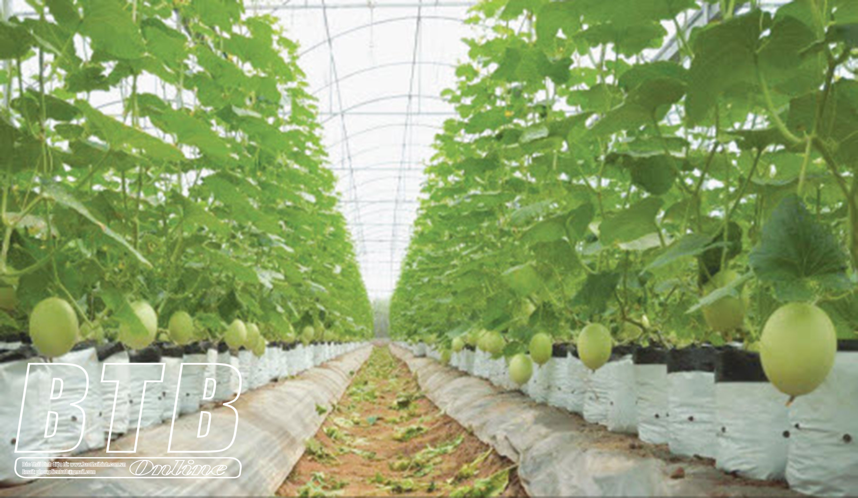 Mô hình trồng dưa lưới trong nhà màng của anh Trần Xuân Tâm, xã Tân Lễ (Hưng Hà). Ảnh: Hà Tuyết