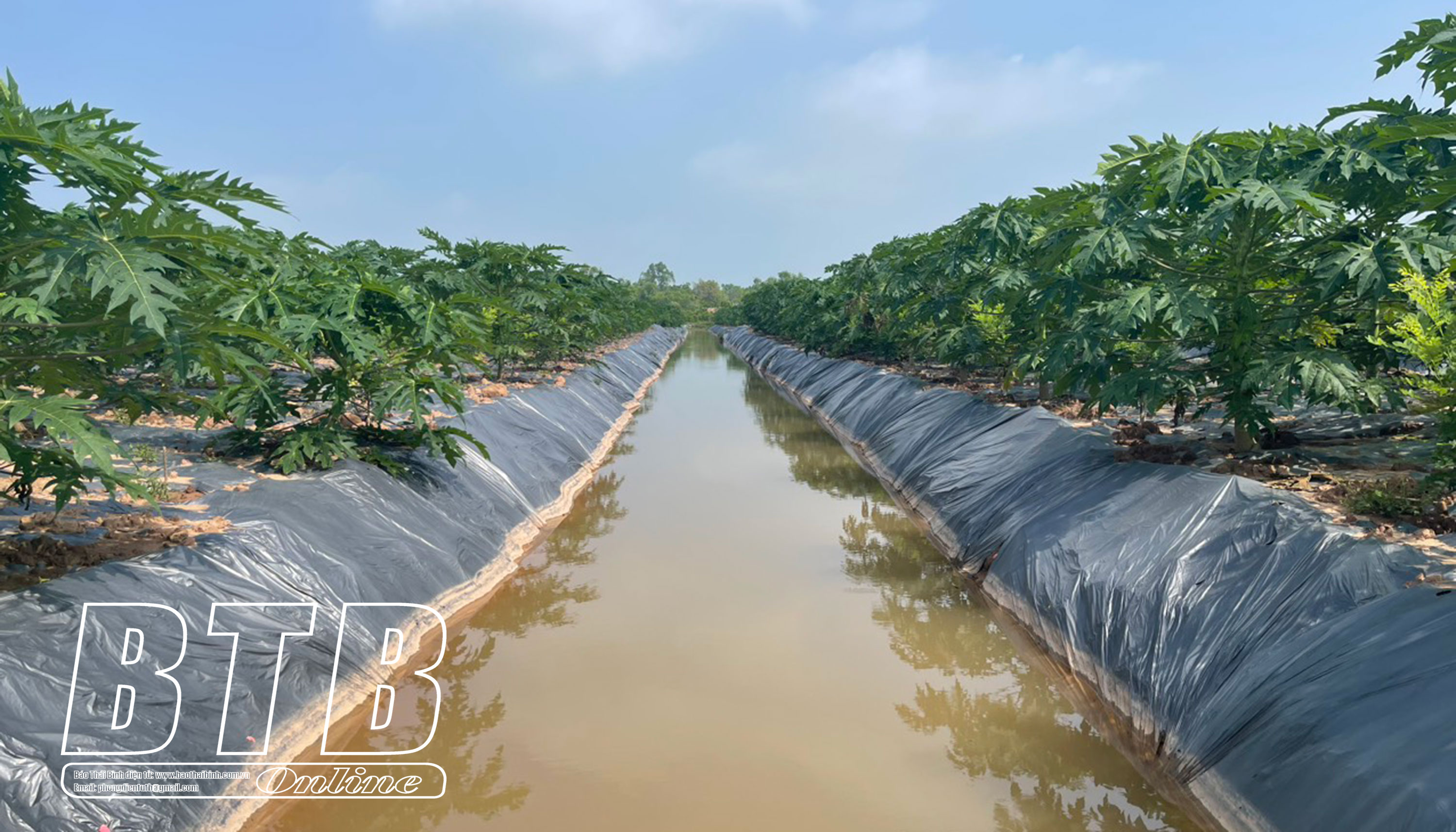 Mô hình trồng hòe và đu đủ lấy hoa của HTX Thái Dương Xanh tại thôn Tịnh Xuyên, xã Hồng Minh (Hưng Hà).