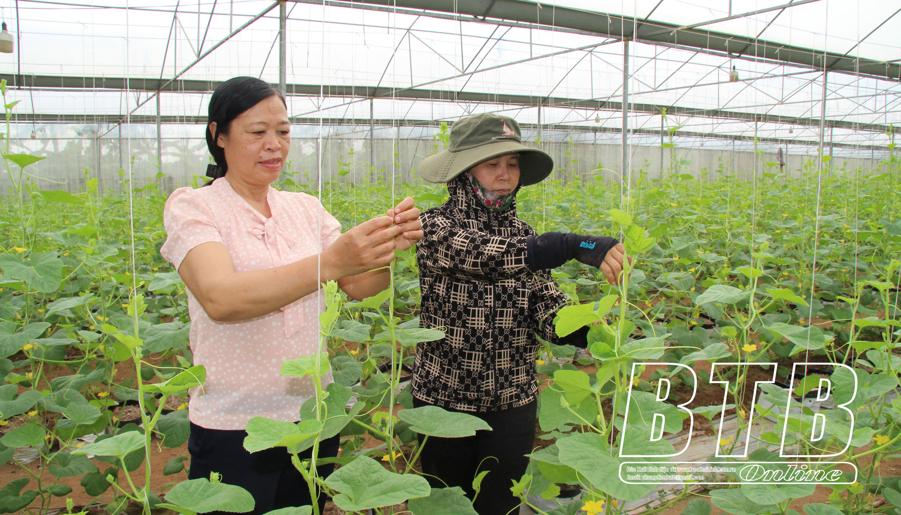 Mô hình dưa lê Hàn Quốc của bà Trần Thị Nhàn, xã Tiến Đức là mô hình triển vọng thực hiện mô hình nông nghiệp sinh thái.