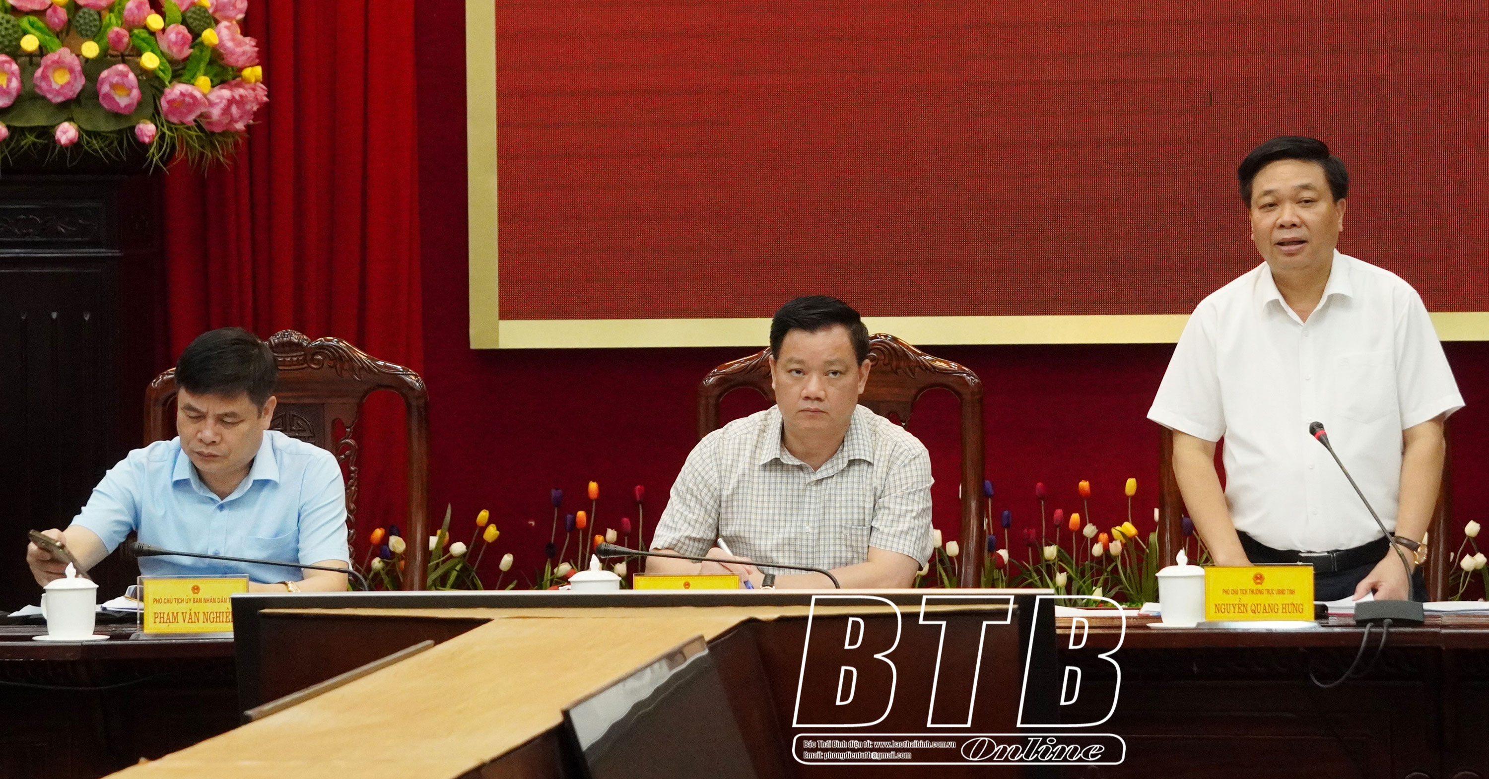 Đồng chí Nguyễn Quang Hưng, Ủy viên Ban Thường vụ Tỉnh ủy, Phó Chủ tịch thường trực UBND tỉnh phát biểu tại hội nghị.