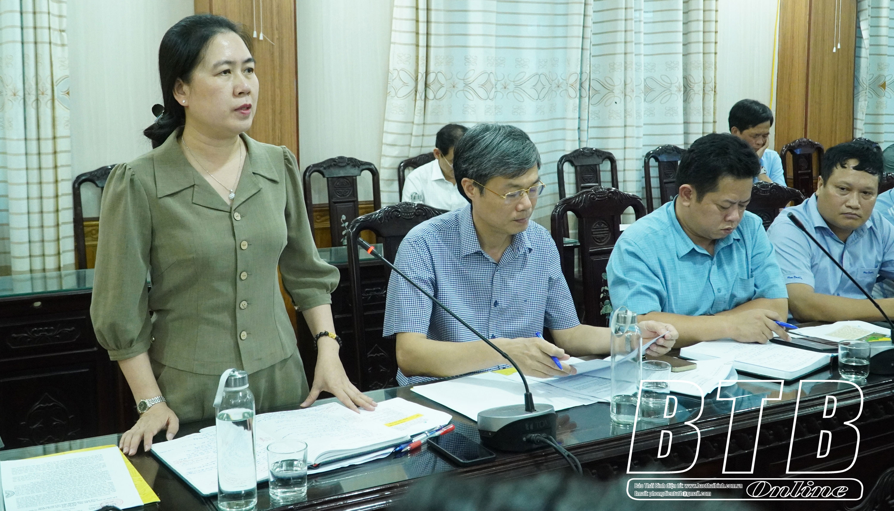 Đồng chí Trần Thị Bích Hằng, Tỉnh ủy viên, Bí thư Huyện ủy Thái Thụy phát biểu lại buổi làm việc.
